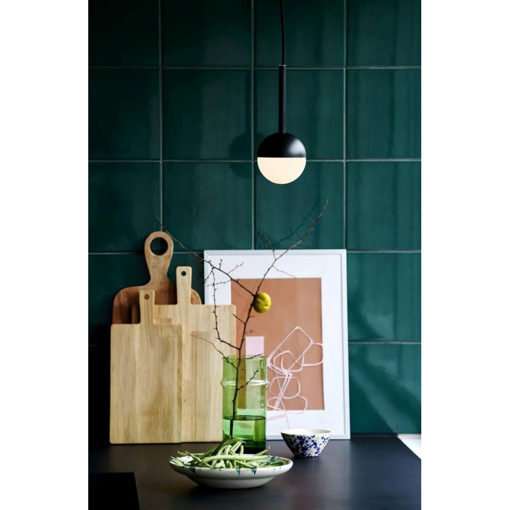 Κρεμαστό φωτιστικό οροφής μονόφωτο από μέταλλο σε χρώμα μαύρο και λευκό οπάλ γυαλί. Διαθέτει καλώδιο σε χρώμα μαύρο και μήκος 200εκ. Δέχεται ένα λαμπτήρα LED G9 με ισχύ έως 5W.