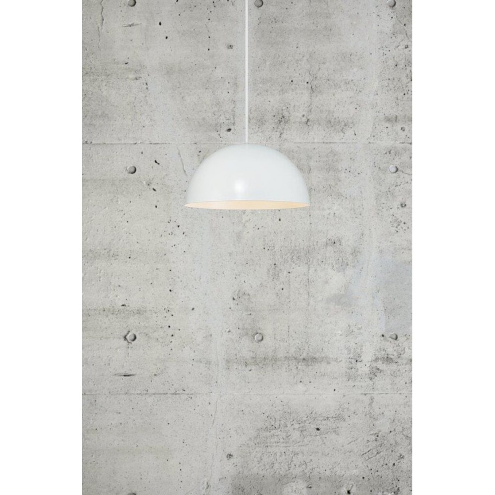 Κρεμαστό φωτιστικό οροφής μονόφωτο από μέταλλο και πλαστικό σε χρώμα λευκό. Διαθέτει καλώδιο σε χρώμα λευκό και μήκος 200εκ. Δέχεται ένα λαμπτήρα LED Ε27 με ισχύ έως 15W.