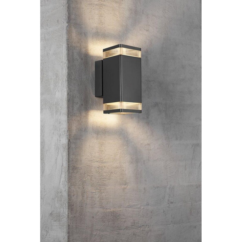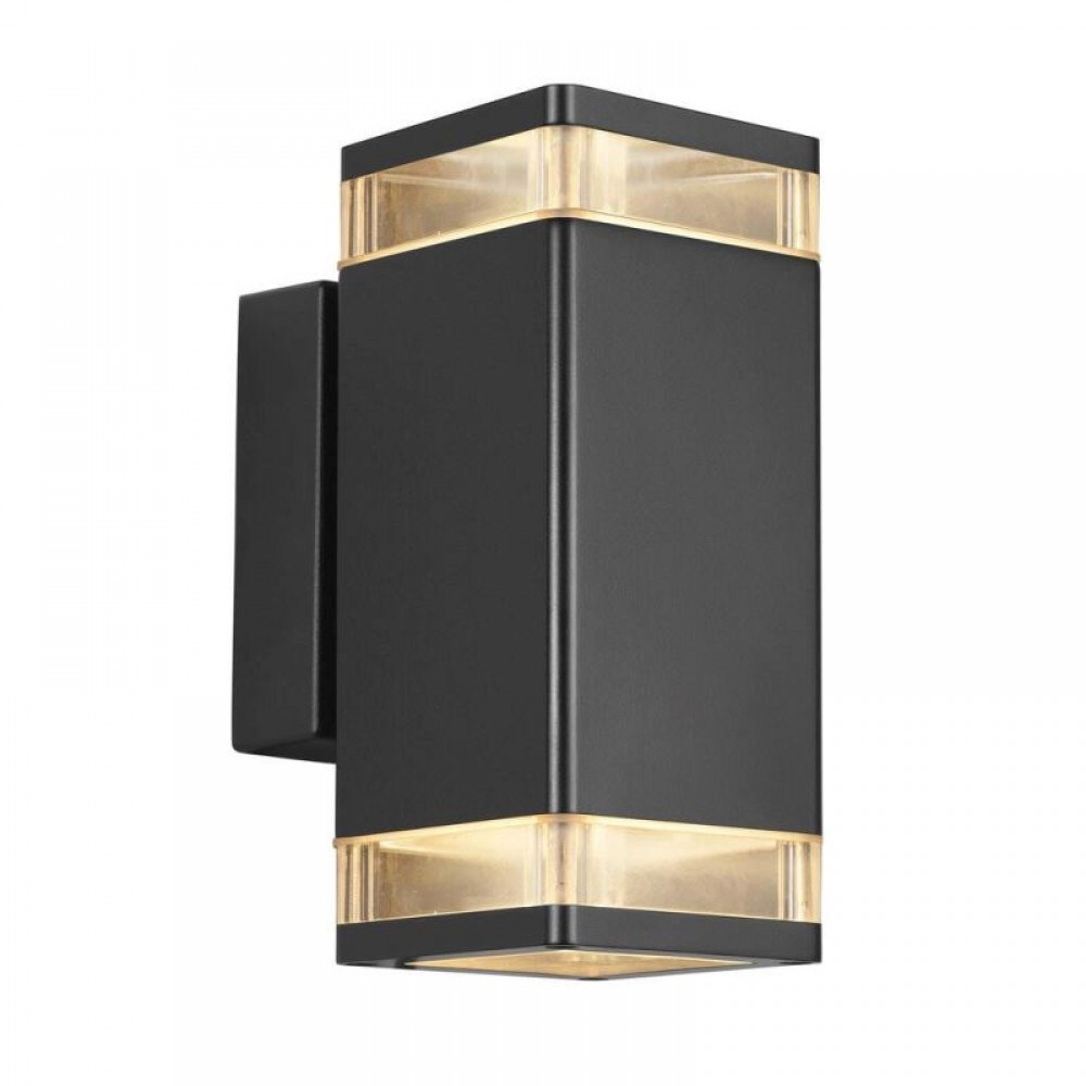 Επίτοιχο φωτιστικό απλίκα δίφωτο εξωτερικού χώρου από αλουμίνιο σε χρώμα μαύρο με διπλή κατεύθυνση φωτισμού πάνω-κάτω. Διαθέτει δύο λαμπτήρες LED GU10 με ισχύ έως 12W.
