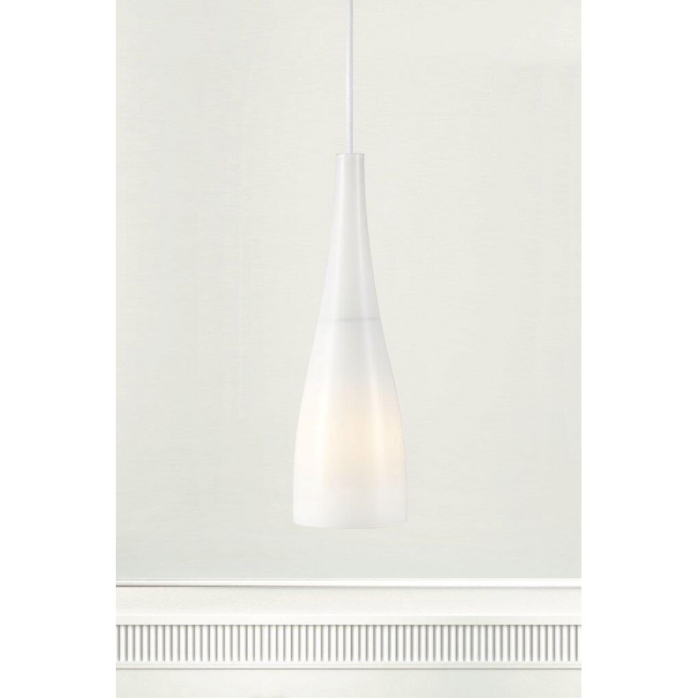 Κρεμαστό φωτιστικό οροφής μονόφωτο από λευκό γυαλί. Διαθέτει καλώδιο σε χρώμα λευκό και μήκος 300εκ. Δέχεται ένα λαμπτήρα LED Ε27 με ισχύ έως 15W.