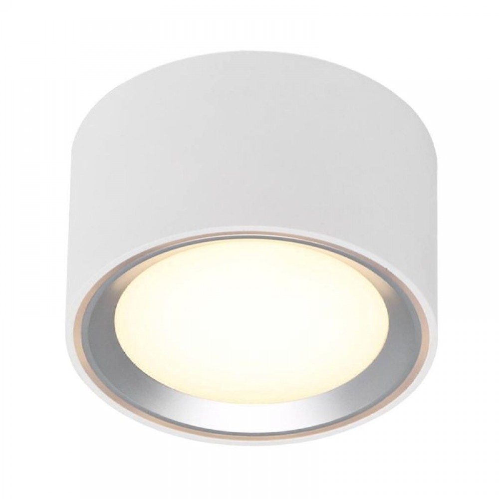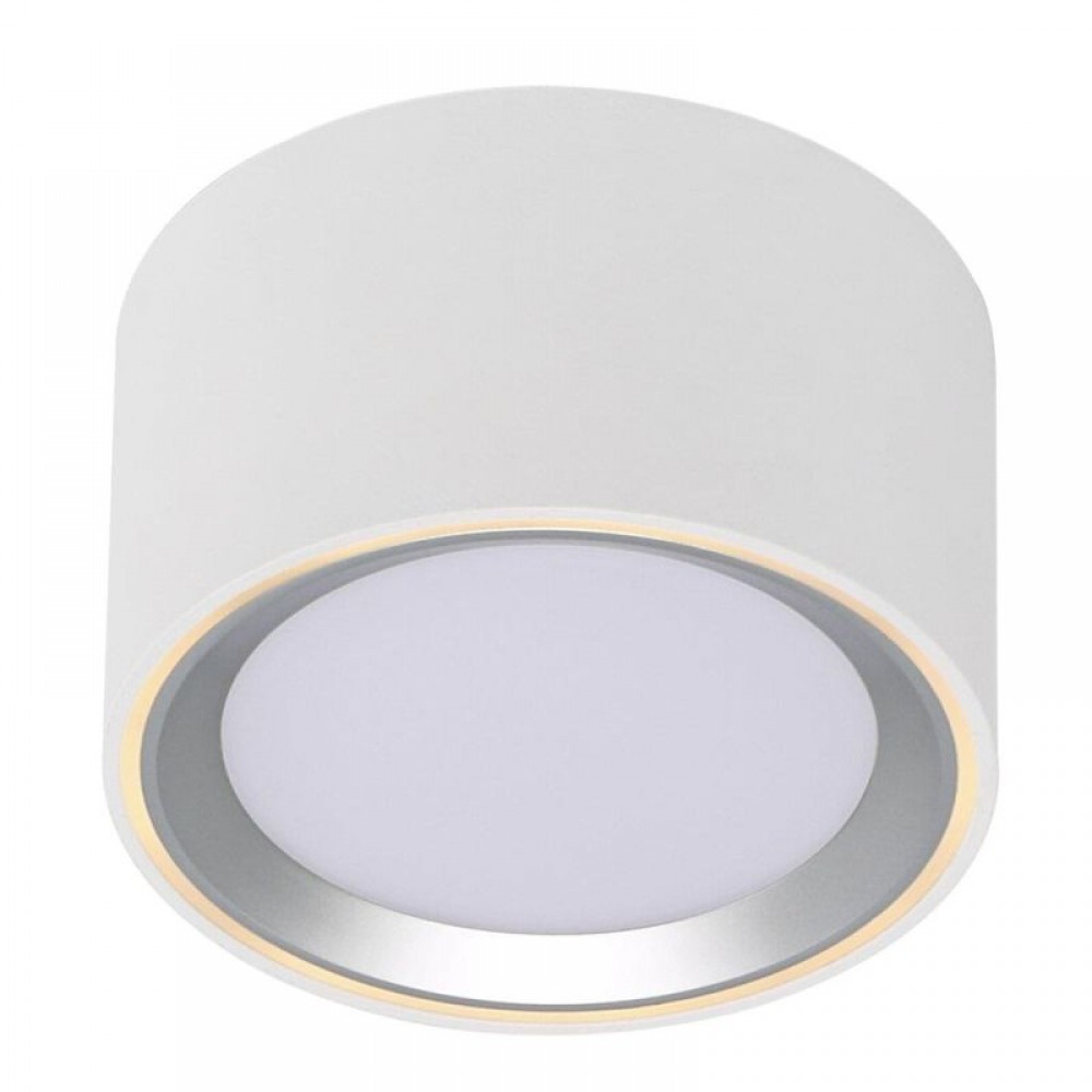 Φωτιστικό οροφής πλαφονιέρα από μέταλλο σε χρώμα λευκό-νίκελ ματ με δυνατότητα τεσσάρων επιλογών φωτισμού. Διαθέτει ενσωματωμένο LED με ισχύ 8,5W και απόδοση 500 Lumen σε θερμό λευκό χρώμα 2700Κ.