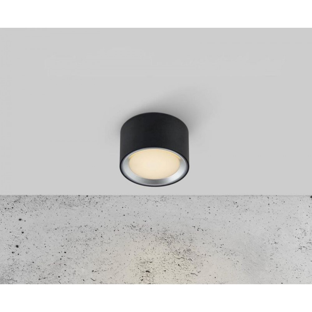 Φωτιστικό οροφής πλαφονιέρα από μέταλλο σε χρώμα μαύρο με δυνατότητα τεσσάρων επιλογών φωτισμού. Διαθέτει ενσωματωμένο LED με ισχύ 8,5W και απόδοση 500 Lumen σε θερμό λευκό χρώμα 2700Κ.