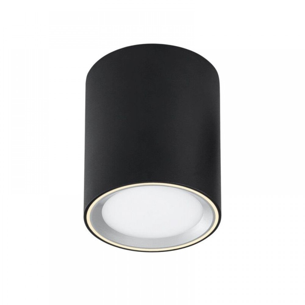 Φωτιστικό οροφής πλαφονιέρα από μέταλλο σε χρώμα μαύρο και σχήμα κυλινδρικό με δυνατότητα τεσσάρων επιλογών φωτισμού. Διαθέτει ενσωματωμένο LED με ισχύ 8,5W και απόδοση 500 Lumen σε θερμό λευκό χρώμα 2700Κ.