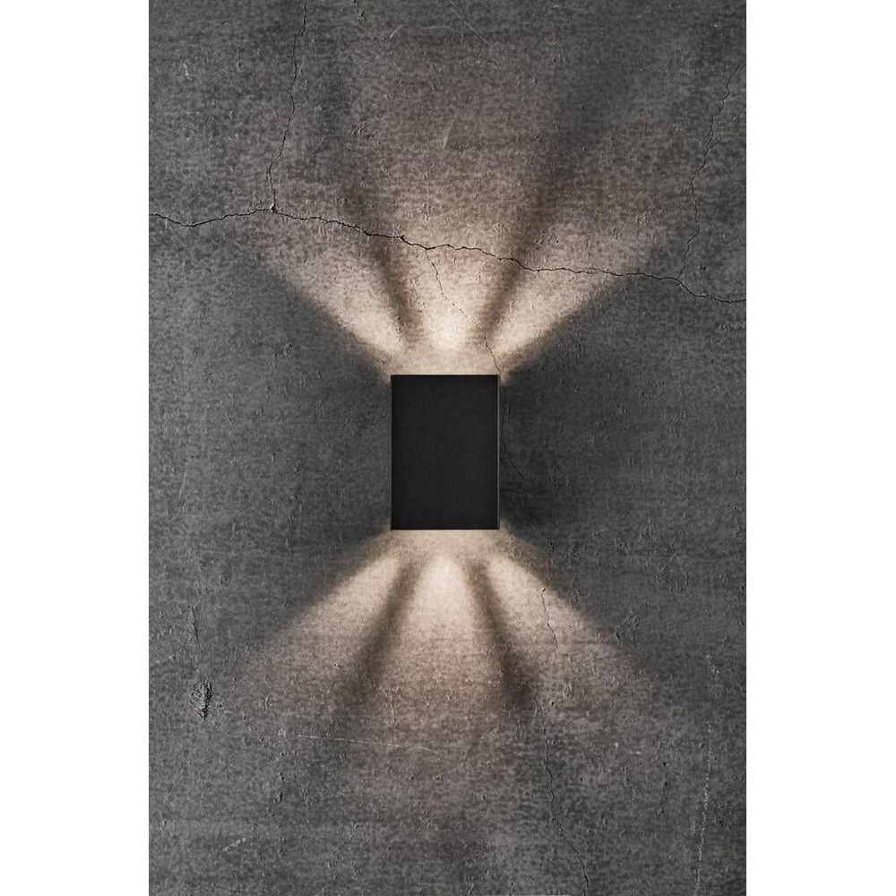 Επίτοιχο φωτιστικό απλίκα δίφωτο εξωτερικού χώρου από αλουμίνιο σε χρώμα μαύρο με διπλή κατεύθυνση φωτισμού πάνω-κάτω και τέσσερις επιλογές για να διαμορφώσετε το προσωπικό σας στυλ. Διαθέτει ενσωματωμένο LED με ισχύ 3,3W και απόδοση 150 Lumen σε θερμό λευκό χρώμα 3000Κ.