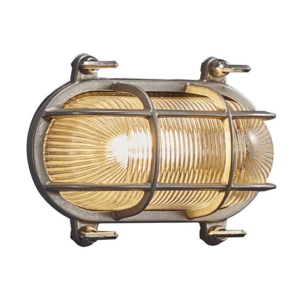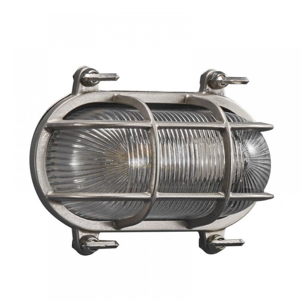 Επίτοιχο φωτιστικό εξωτερικού χώρου απλίκα από ορείχαλκο σε χρώμα νίκελ ματ και λευκό οπάλ γυαλί. Διαθέτει ένα λαμπτήρα LED Ε27 με ισχύ έως 12,5W.