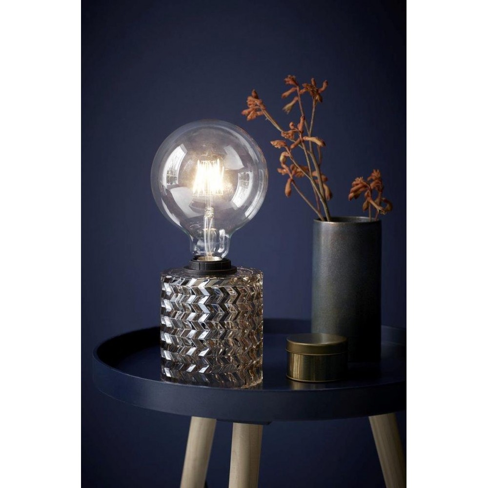 Επιτραπέζιο φωτιστικό μονόφωτο από γυαλί σε χρώμα μελί. Διαθέτει καλώδιο σε χρώμα μαύρο και μήκος 180εκ. Δέχεται ένα λαμπτήρα LED Ε27 με ισχύ έως 15W.