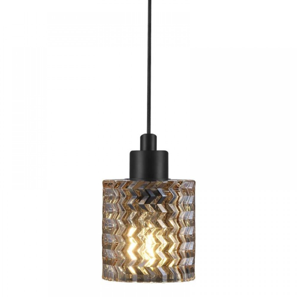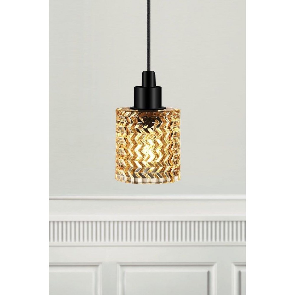 Κρεμαστό φωτιστικό οροφής μονόφωτο από γυαλί σε χρώμα μελί και βάση μεταλλική σε χρώμα μαύρο. Διαθέτει καλώδιο σε χρώμα μαύρο και μήκος 300εκ. Δέχεται ένα λαμπτήρα LED Ε27 με ισχύ έως 15W.