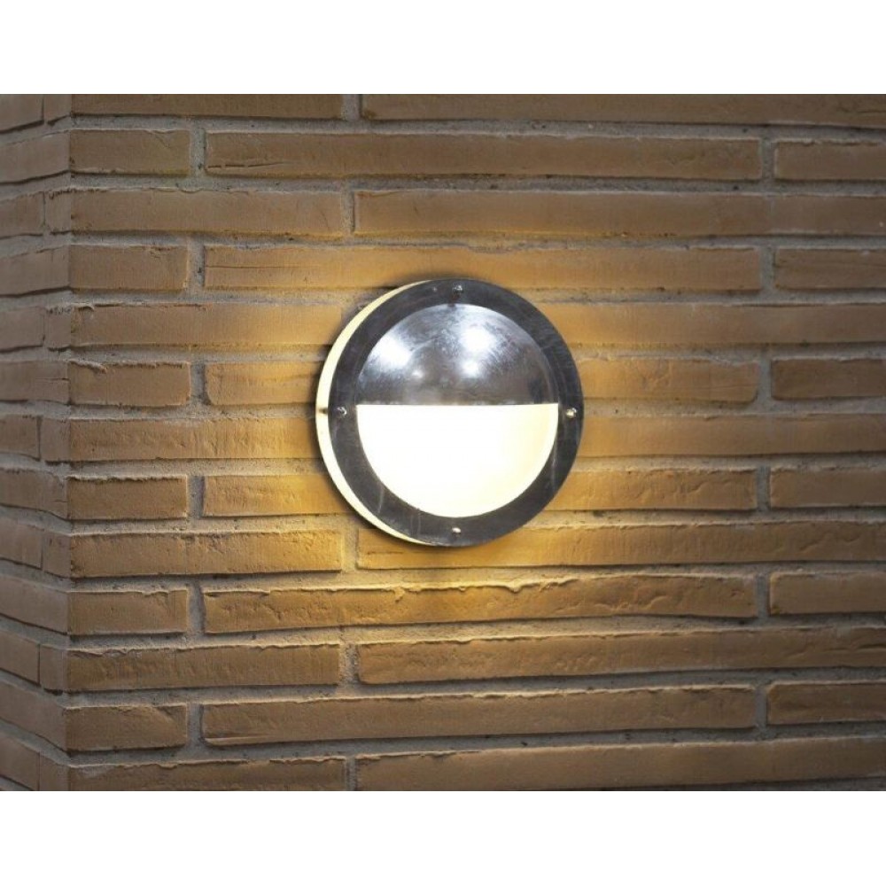 Επίτοιχο φωτιστικό εξωτερικού χώρου απλίκα από γαλβανιζέ ατσάλι σε χρώμα νίκελ ματ. Διαθέτει ένα λαμπτήρα LED Ε27 με ισχύ έως 15W.
