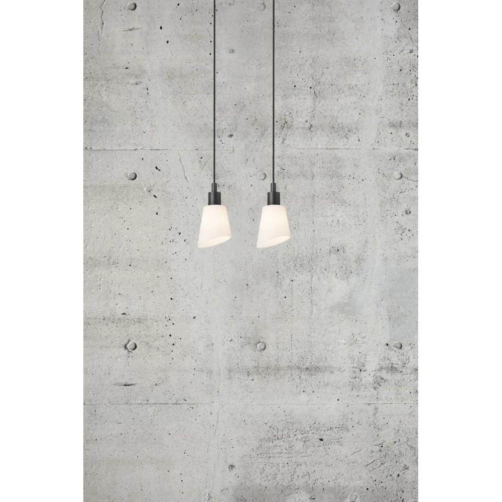 Κρεμαστό φωτιστικό οροφής μονόφωτο από μέταλλο σε χρώμα μαύρο και λευκό οπάλ γυαλί. Διαθέτει καλώδιο σε χρώμα μαύρο και μήκος 200εκ. Δέχεται ένα λαμπτήρα LED Ε14 .