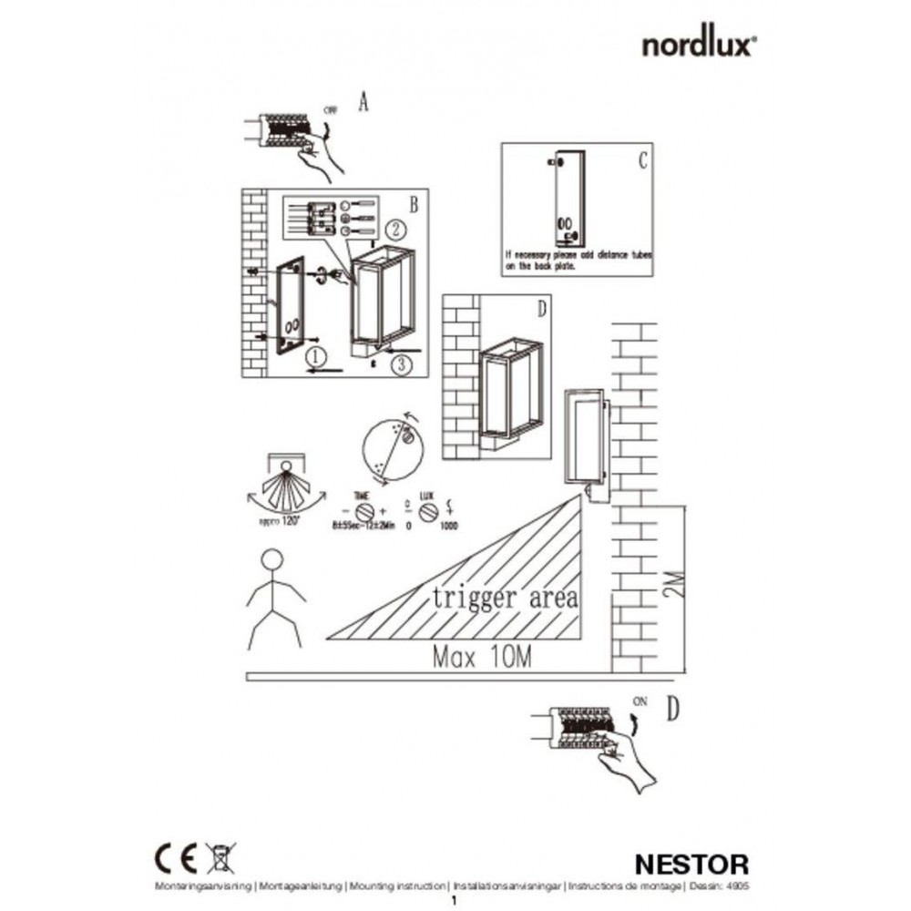 Nordlux Nestor Φωτιστικό Τοίχου Μαύρο IP44 LED 8W 2700K με Ανιχνευτή Κίνησης – 49051503