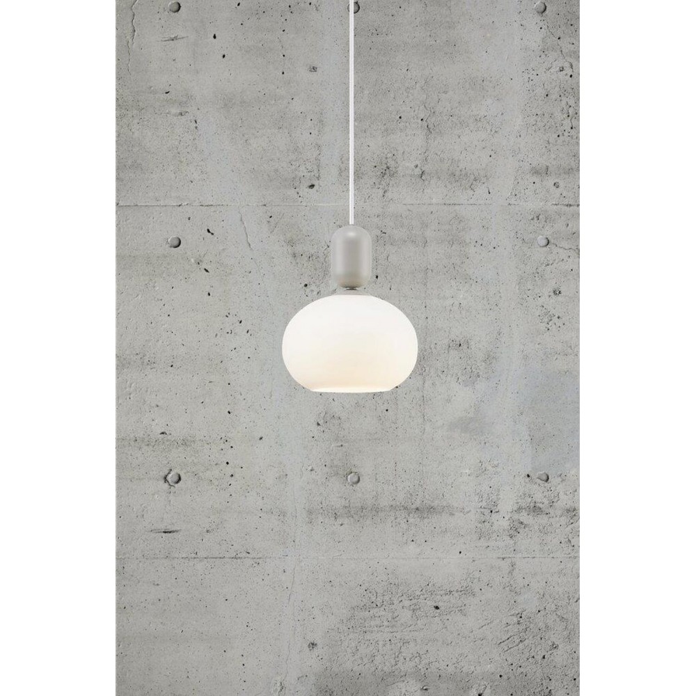 Κρεμαστό φωτιστικό οροφής μονόφωτο από λευκό οπάλ γυαλί και βάση μεταλλική σε χρώμα γκρι. Διαθέτει καλώδιο σε χρώμα λευκό και μήκος 200εκ. Δέχεται ένα λαμπτήρα LED Ε27 με ισχύ έως 15W.