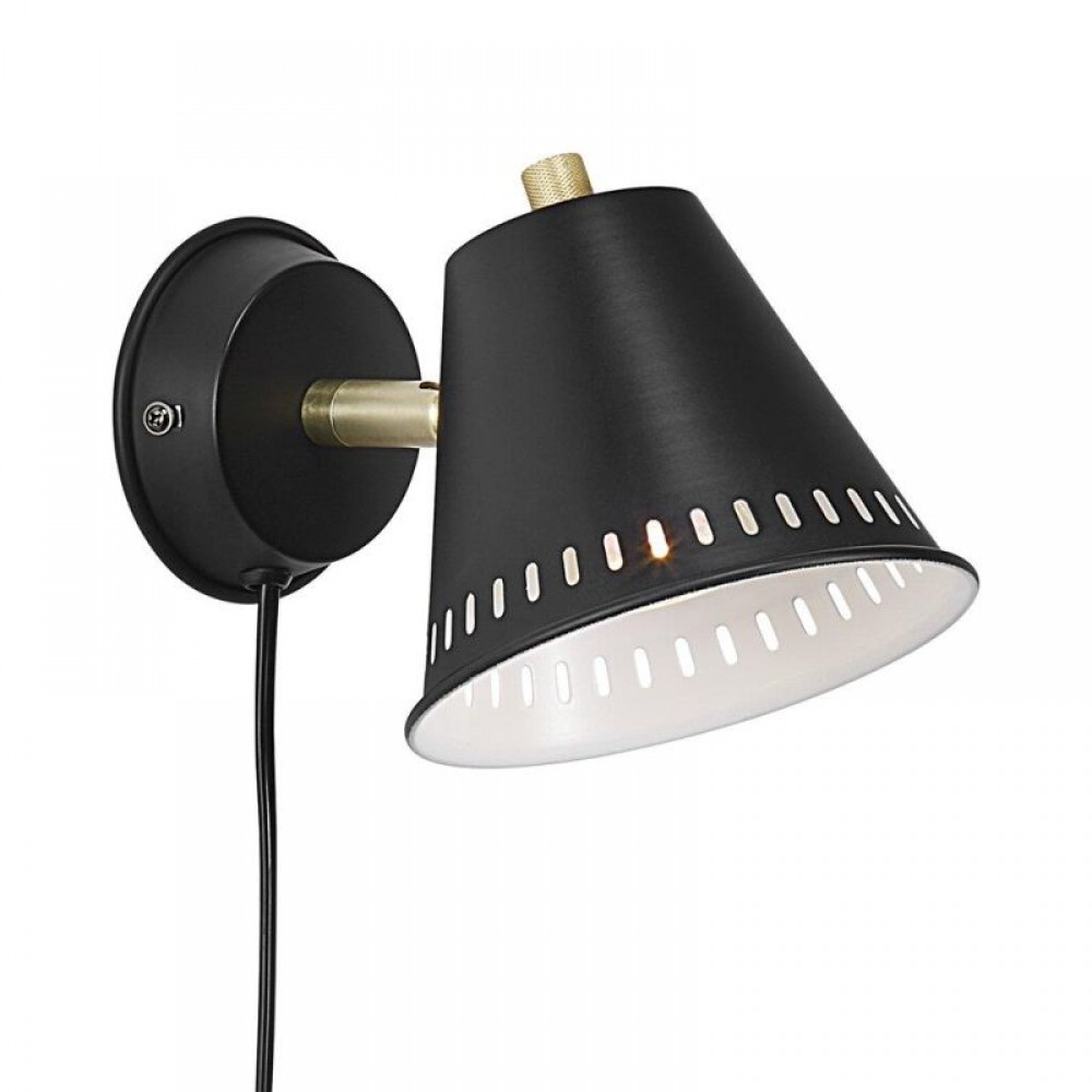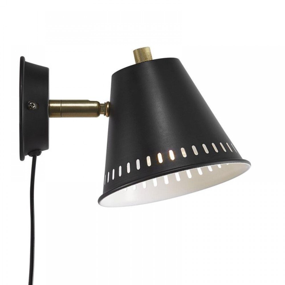 Επίτοιχο φωτιστικό από μέταλλο σε χρώμα μαύρο και λεπτομέρειες στο χρώμα του ορείχαλκου. Διαθέτει καλώδιο σε χρώμα μαύρο με μήκος 150εκ. Δέχεται ένα λαμπτήρα LED GU10 με ισχύ έως 12W.