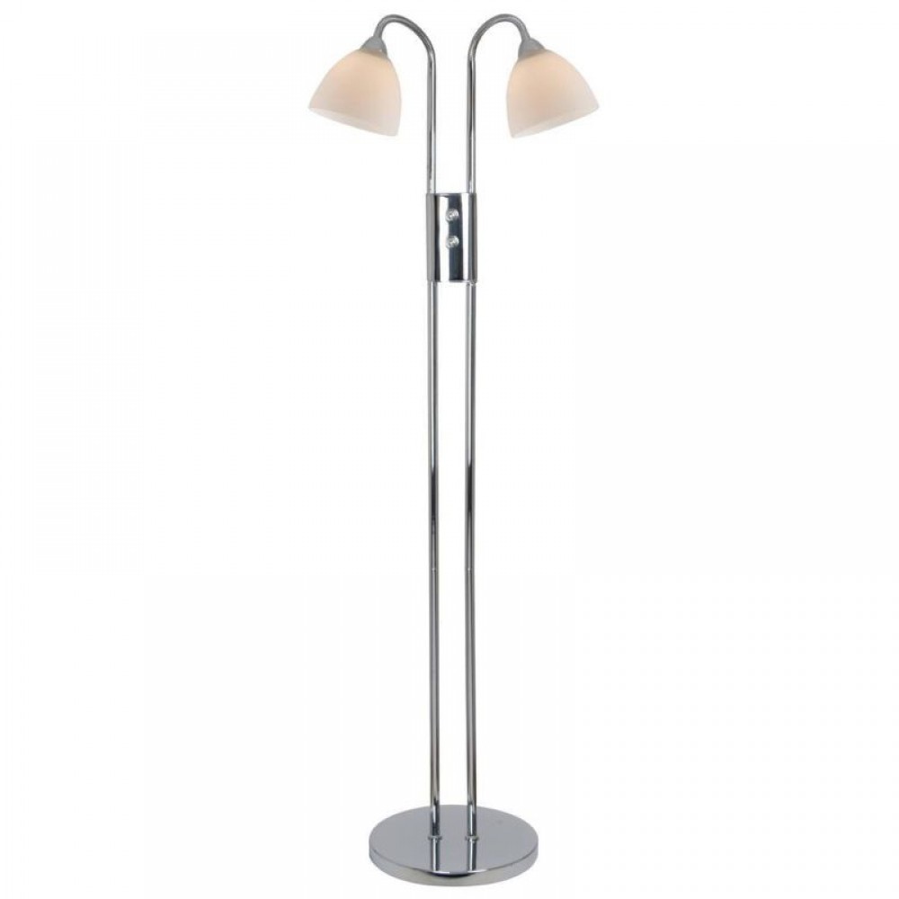 Επιδαπέδιο φωτιστικό δίφωτο από μέταλλο σε χρώμιο και λευκό οπάλ γυαλί. Διαθέτει καλώδιο σε χρώμα διάφανο και μήκος 180εκ. Δέχεται δύο λαμπτήρες LED Ε14 με ισχύ έως 12W.