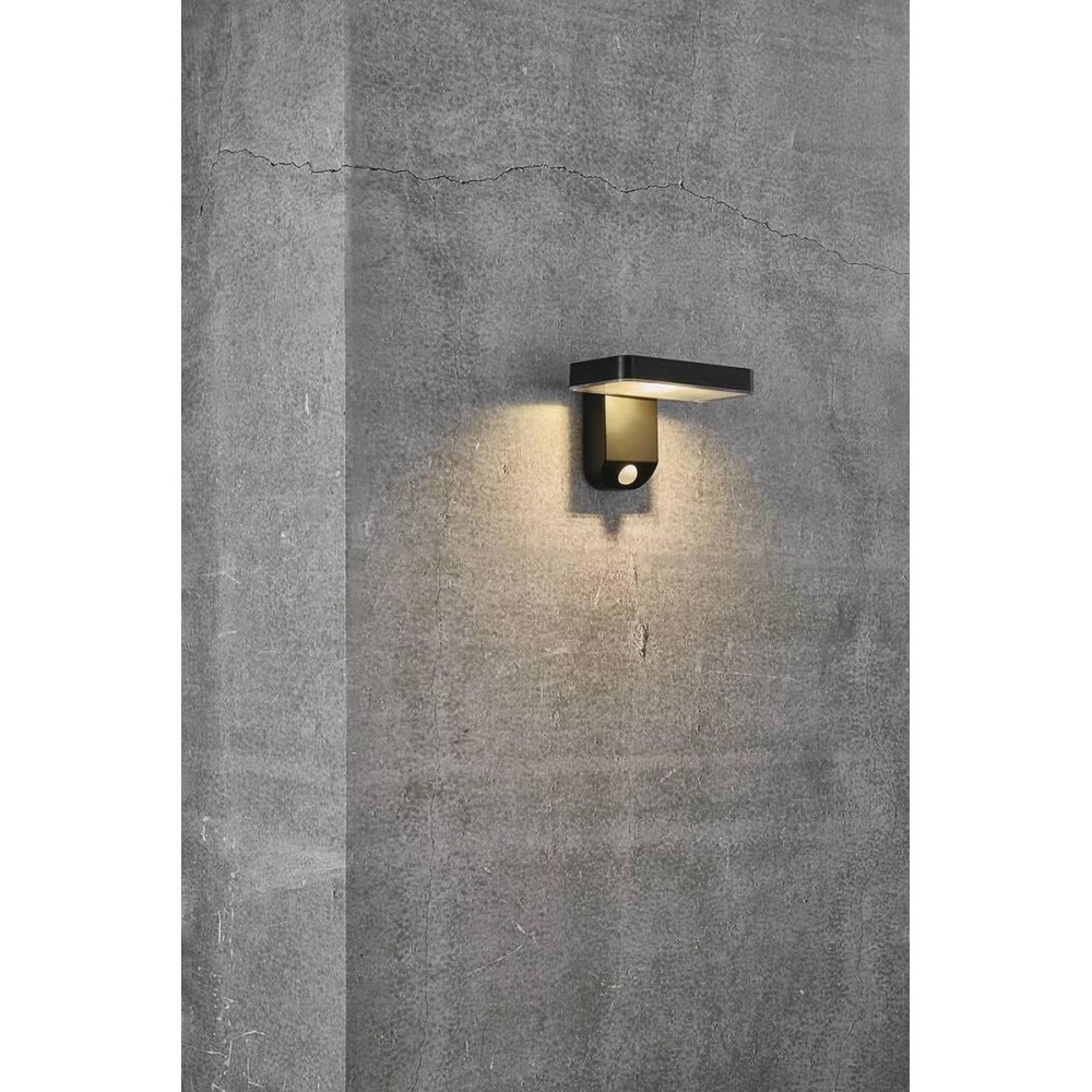 Καρφωτό φωτιστικό απλίκα εξωτερικού χώρου από πλαστικό σε χρώμα μαύρο με βαθμό στεγανότητας IP44 και αισθητήρα ανίχνευσης της κίνησης ώστε το φως να ανάβει αυτόματα. Φορτίζει κατά τη διάρκεια της ημέρας με το φως του ήλιου. Διαθέτει ενσωματωμένο LED με ισχύ 5W και απόδοση 450 Lumen σε θερμό λευκό χρώμα 3000Κ.
