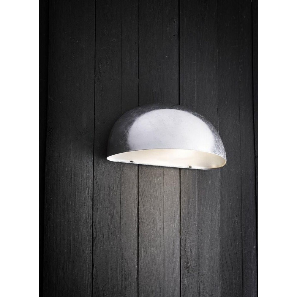 Επίτοιχο φωτιστικό εξωτερικού χώρου απλίκα από ατσάλι γαλβανιζέ και πλαστικό σε χρώμα νίκελ ματ. Διαθέτει ένα λαμπτήρα LED Ε14 με ισχύ έως 12W.