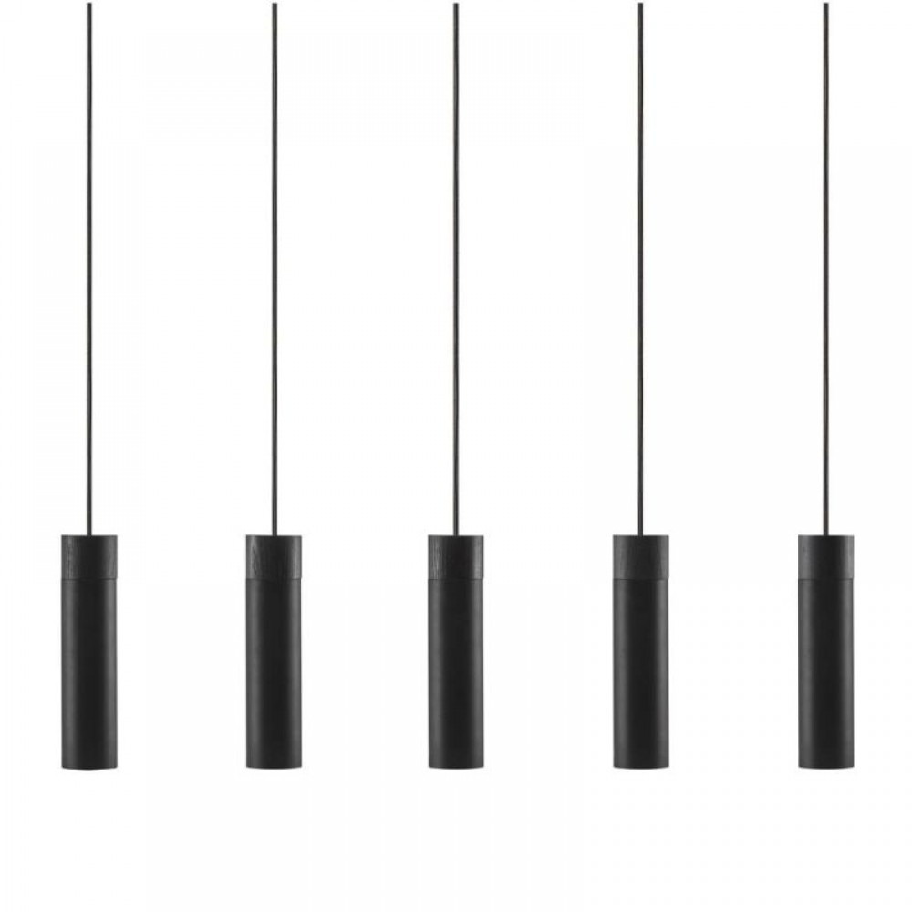 Κρεμαστό φωτιστικό οροφής πεντάφωτο σε διάταξη ράγας από μέταλλο σε χρώμα μαύρο και ξύλο. Διαθέτει καλώδιο σε χρώμα μαύρο και μήκος 200εκ. Διαθέτει πέντε λαμπτήρες LED GU10 με ισχύ έως 12W.