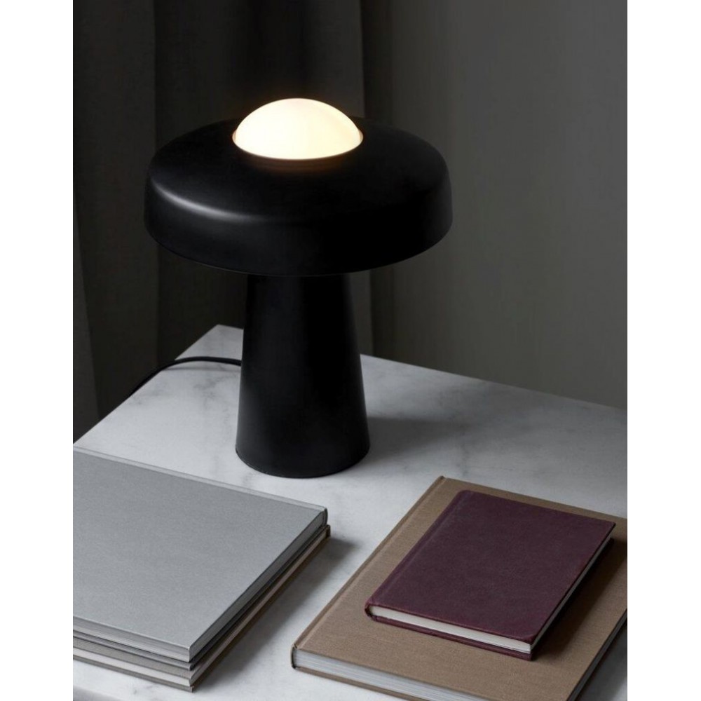 Επιτραπέζιο φωτιστικό μονόφωτο από μέταλλο σε χρώμα μαύρο και λευκό οπάλ γυαλί. Διαθέτει καλώδιο σε χρώμα μαύρο και μήκος 150εκ. Δέχεται ένα λαμπτήρα LED Ε27 με ισχύ έως 15W.