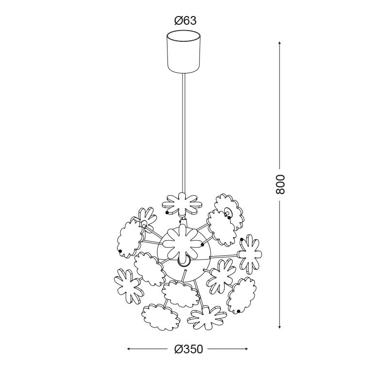 Παιδικό Φωτιστικό Οροφής με Λουλούδια 4xE14 Ø350 Πολύχρωμο ACA – MD160224FLW