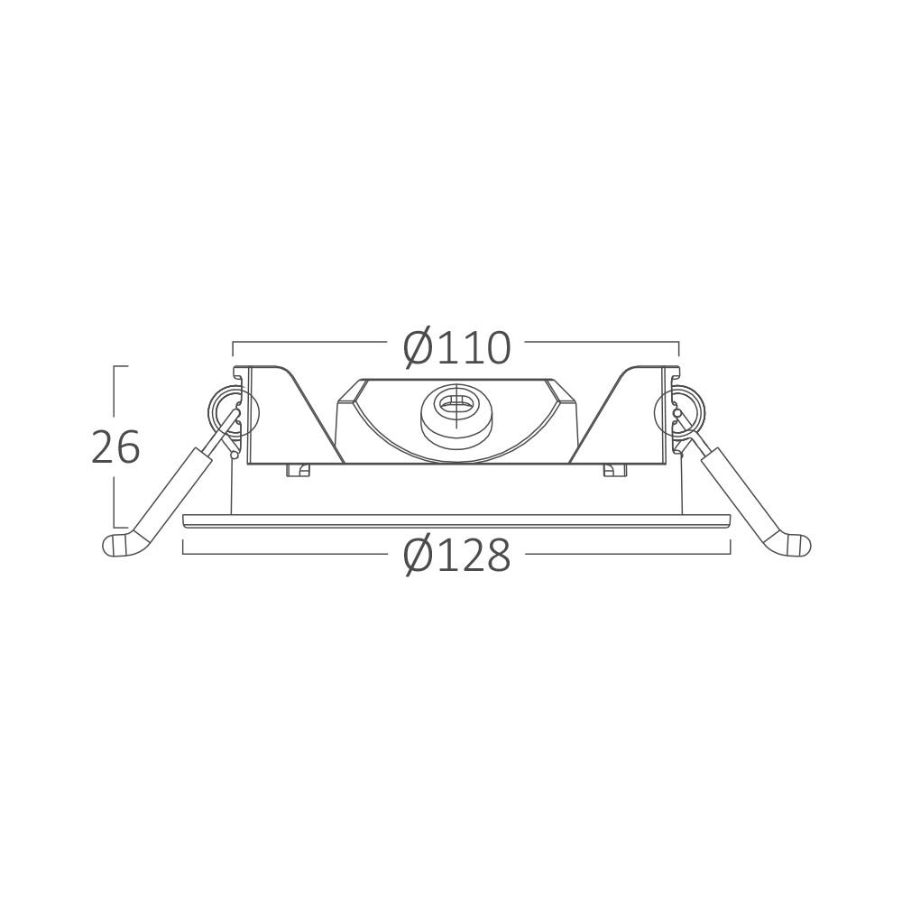 Σώμα: recessed panel Ø 128 mm, πάχος 26 mm, διάτρηση Ø 110 mm