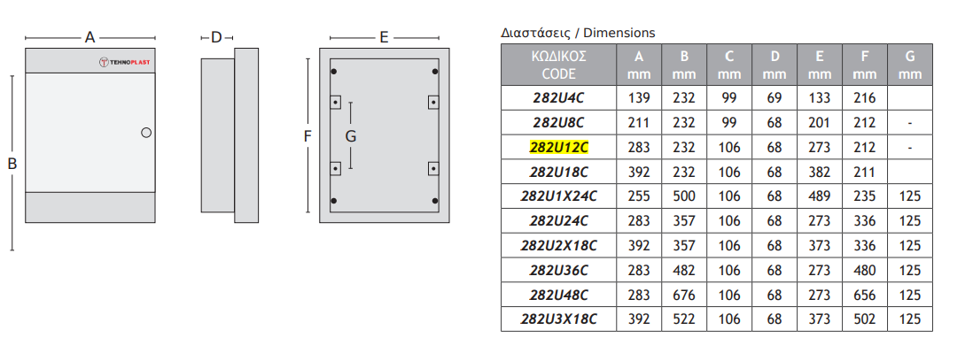 Πίνακας Χωνευτός IP40 Με Διάφανη πλαστική Πόρτα 1 Σειράς 12 Θέσεων U12C ACA – 282U12C