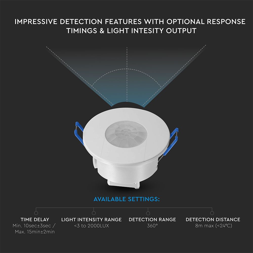 Ανιχνευτής Κίνησης Χωνευτός Λευκός V-TAC – 24108