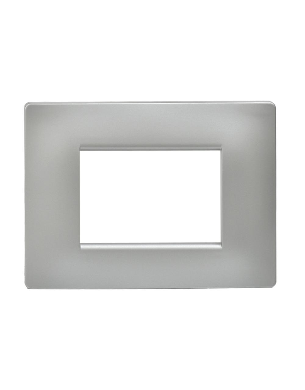 Πλαίσιο για οριζόντια χρήση της σειράς Elettrocanali My Life σε χρώμα αλουμινίου ανοικτό γυαλιστερό. Είναι τριών θέσεων και από θερμοπλαστικό υλικό.