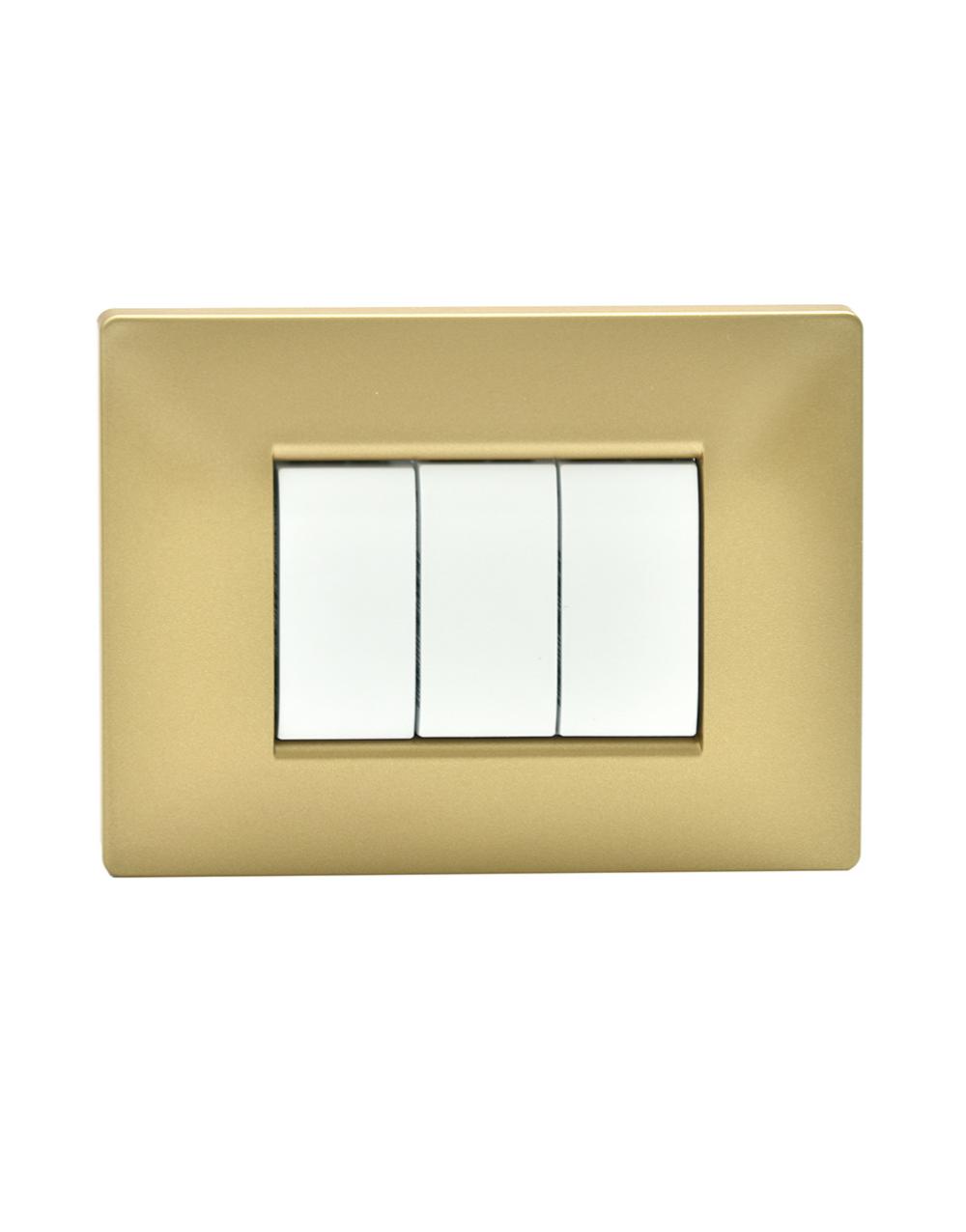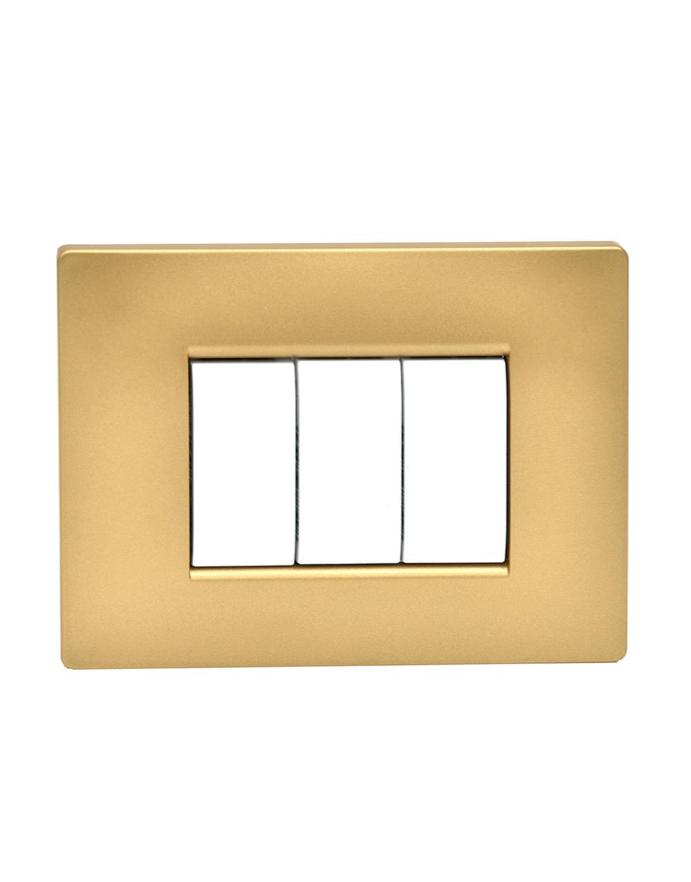 Πλαίσιο για οριζόντια χρήση της σειράς Elettrocanali My Life σε χρώμα χρυσή άμμος ματ. Είναι τριών θέσεων και από θερμοπλαστικό υλικό.