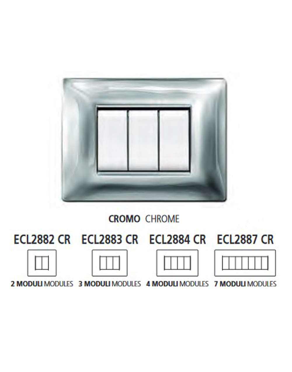 Πλαίσιο για οριζόντια χρήση της σειράς Elettrocanali My Life σε χρώμα χρώμιο γυαλιστερό. Είναι τεσσάρων θέσεων και από θερμοπλαστικό υλικό.