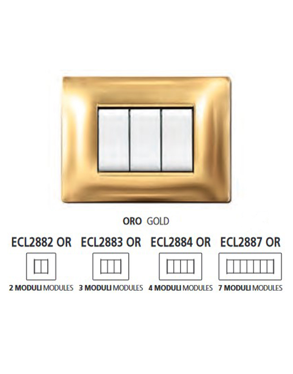 Πλαίσιο για οριζόντια χρήση της σειράς Elettrocanali My Life σε χρώμα χρυσό γυαλιστερό. Είναι τεσσάρων θέσεων και από θερμοπλαστικό υλικό.