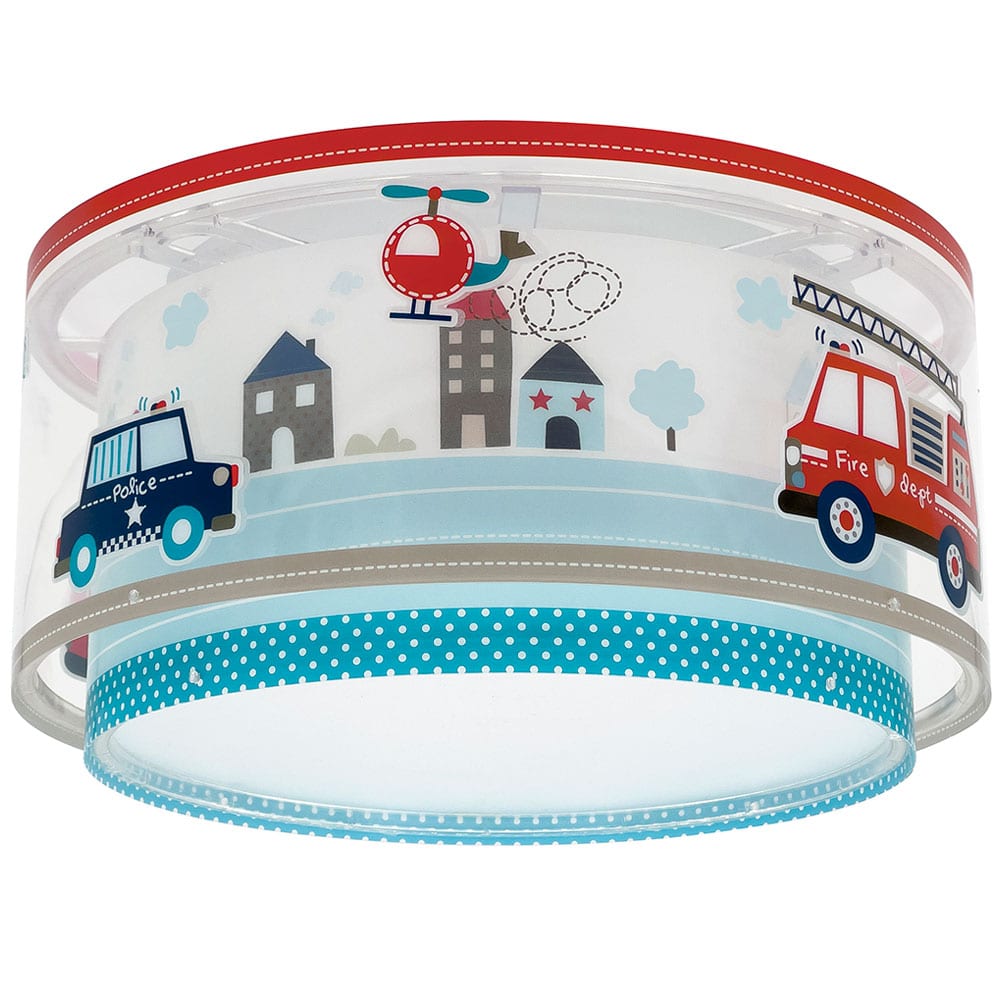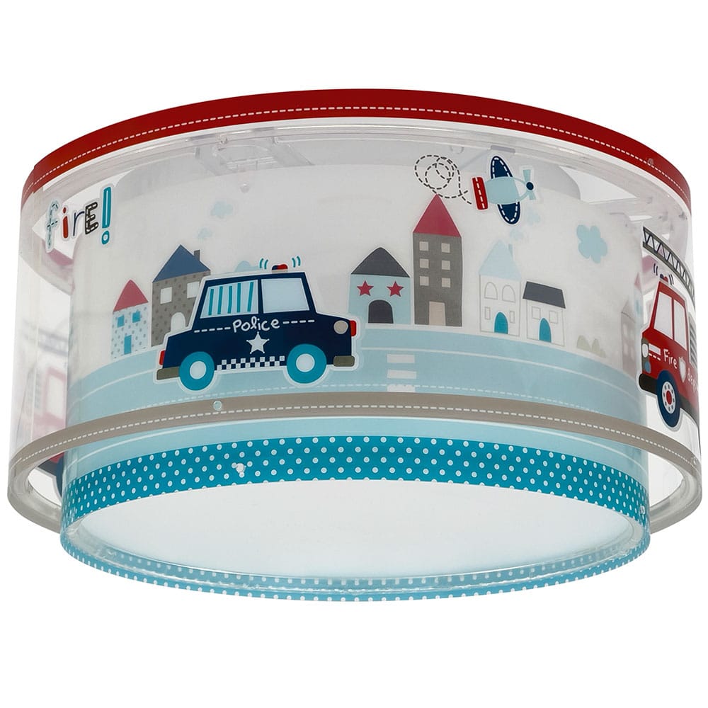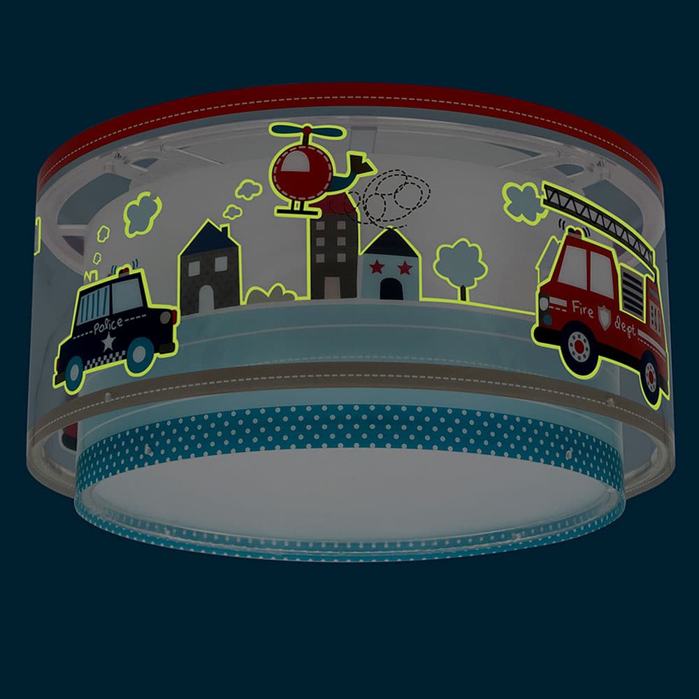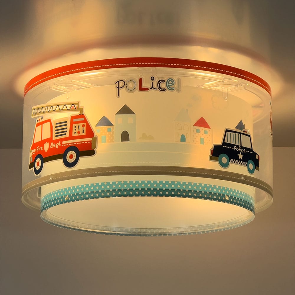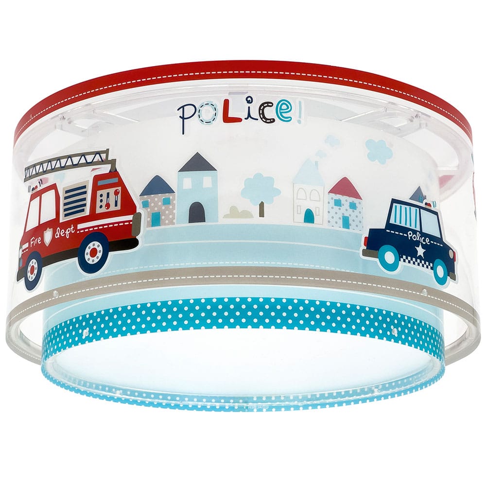 Παιδικό φωτιστικό οροφής τύπου πλαφονιέρα κατάλληλο για γενικό φωτισμό και όλες τις δραστηριότητες των παιδιών. Είναι διπλού τοιχώματος από άκαυστο λεπτό πολυπροπυλένιο και φωσφορίζοντα στο σκοτάδι εξωτερικά μέρη. Τοποθετείται εύκολα και γρήγορα και είναι εφοδιασμένο με δύο θέσεις λαμπτήρων LED για πραγματικά άπλετο φως στο δωμάτιο. Παρέχεται διαχυτής φωτός για τις μικρότερες ηλικίες που προσφέρει ομοιόμορφο φωτισμό αλλά και προστασία. Κατασκευασμένο εξ ολοκλήρου στην Ευρώπη το Police πλαφονιέρα οροφής, συμπληρώνει τα υπόλοιπα παιδικά φωτιστικά της συλλογής κομοδίνου, απλίκα ή νυκτός.