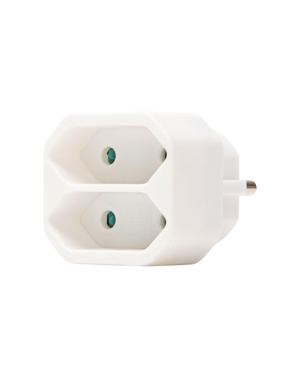 Αντάπταρας σε 2 διπολικά. Έχει τάση τροφοδοσίας 250V, συχνότητα λειταυργίας 50/60Hz και ένταση ρεύματας 5Α. Τα υλικά κατασκευής είναι πλαστικό και χαλκός. Ο βαθμός στεγανότητας είναι IP20 και η εγγύηση είναι 2 έτη από την Kopp.