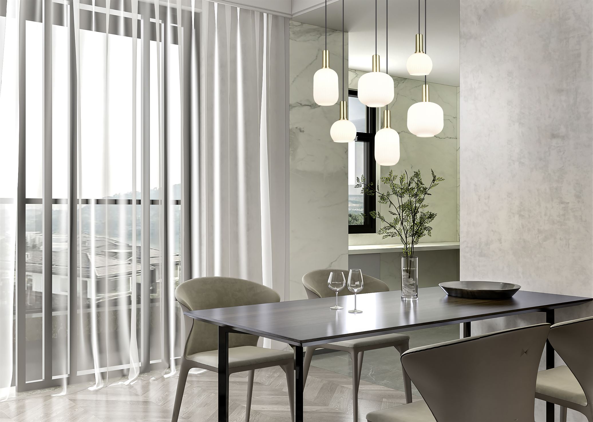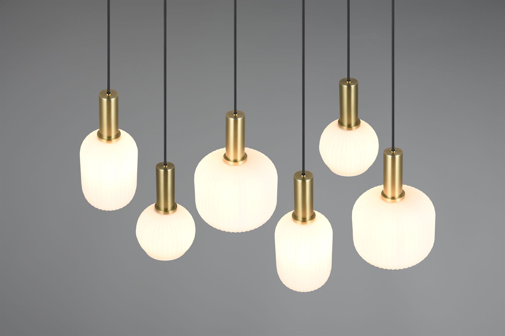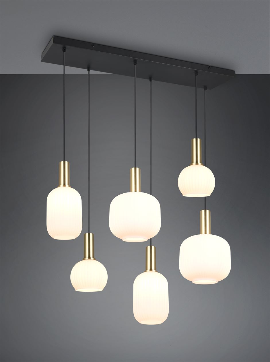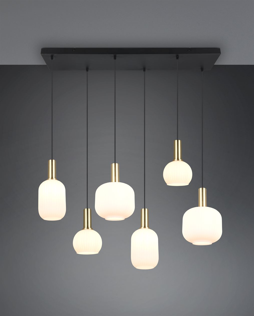 Οι ευέλικτες γυάλινες αποχρώσεις των κρεμαστών φωτιστικών της σειράς DIVA προσδίδουν στο εσωτερικό σας μια ιδιαίτερη γοητεία. Κρεμασμένα πάνω από ένα τραπέζι φαγητού, τραπεζάκι σαλονιού ή πάγκο κουζίνας, είναι ένα εντυπωσιακό μάτι που μαγνητίζει την προσοχή όλων. Το ειδικό σχήμα και ο σχεδιασμός του γυαλιού διαχέει το φως απαλά και χωρίς λάμψη, δημιουργώντας ένα άνετο παιχνίδι φωτός. Αυτή η ζεστή ατμόσφαιρα φωτισμού, σε συνδυασμό με τον διαχρονικό σχεδιασμό, θα κάνουν γρήγορα το DIVA αγαπημένο στο σπίτι σας. Ο λαμπερός συνδυασμός από ματ ορείχαλκο και λευκό γυαλί οπάλιο δίνει στο φως των έξι λαμπτήρων μια κομψή και διακριτική εμφάνιση. Συνιστάται η χρήση πηγών φωτός LED για φωτισμό εξοικονόμησης ενέργειας. Αυτές είναι μια ιδανική εναλλακτική λύση σε σχέση με τις συμβατικές πηγές φωτός αλογόνου και προσφέρουν υψηλή ποιότητα φωτός και εξοικονόμηση ενέργειας έως και 80%. Με τις πηγές φωτός LED, επωφεληθείτε επίσης από τη μεγάλη διάρκεια ζωής και τη χαμηλή παραγωγή θερμότητας προστατεύοντας παράλληλα το περιβάλλον.