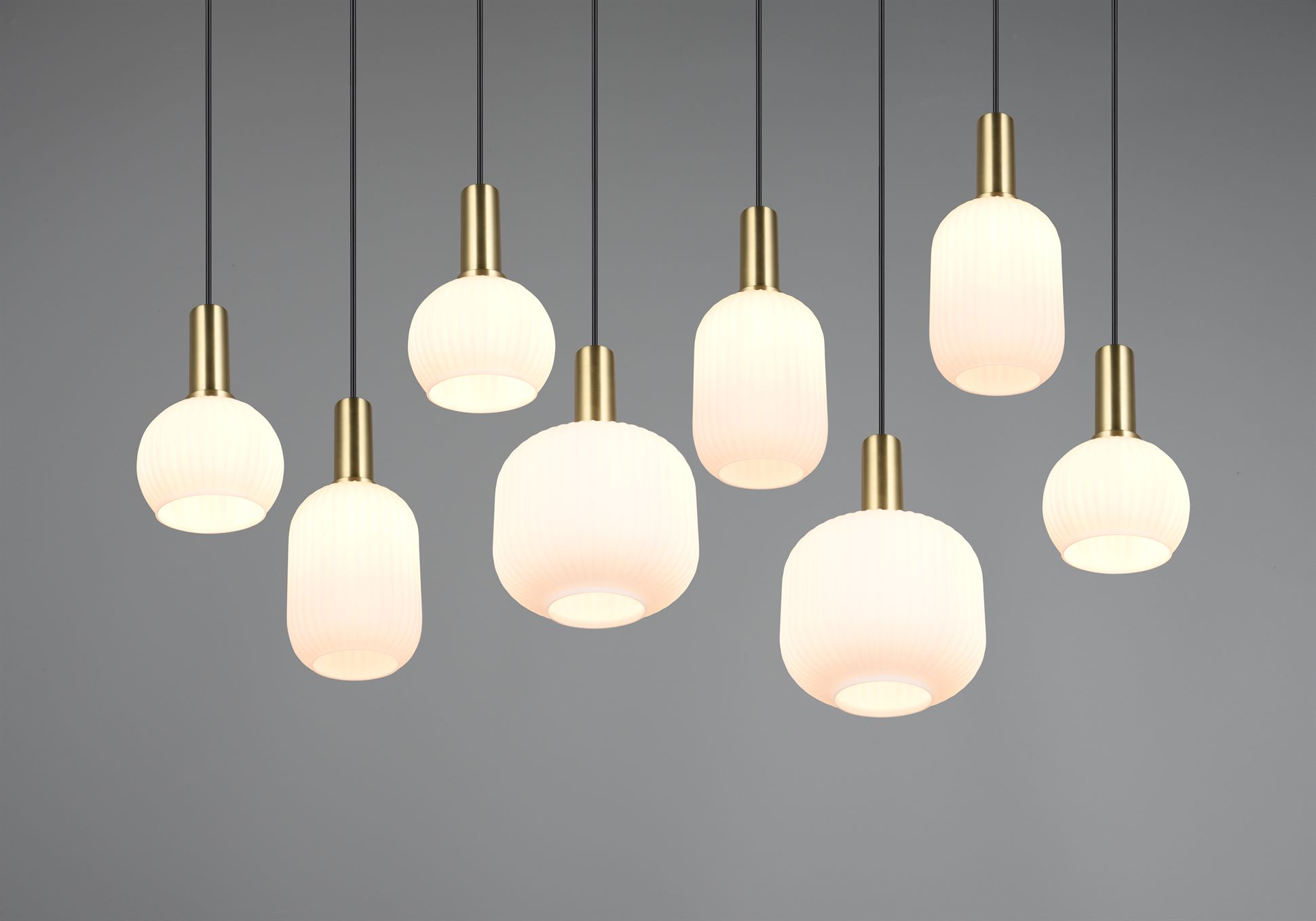 Οι ευέλικτες γυάλινες αποχρώσεις των κρεμαστών φωτιστικών της σειράς DIVA προσδίδουν στο εσωτερικό σας μια ιδιαίτερη γοητεία. Κρεμασμένα πάνω από ένα τραπέζι φαγητού, τραπεζάκι σαλονιού ή πάγκο κουζίνας, είναι ένα εντυπωσιακό μάτι που μαγνητίζει την προσοχή όλων. Το ειδικό σχήμα και ο σχεδιασμός του γυαλιού διαχέει το φως απαλά και χωρίς λάμψη, δημιουργώντας ένα άνετο παιχνίδι φωτός. Αυτή η ζεστή ατμόσφαιρα φωτισμού, σε συνδυασμό με τον διαχρονικό σχεδιασμό, θα κάνουν γρήγορα το DIVA αγαπημένο στο σπίτι σας. Ο λαμπερός συνδυασμός από ματ ορείχαλκο και λευκό γυαλί οπάλιο δίνει στο φως των οκτώ λαμπτήρων μια κομψή και διακριτική εμφάνιση. Συνιστάται η χρήση πηγών φωτός LED για φωτισμό εξοικονόμησης ενέργειας. Αυτές είναι μια ιδανική εναλλακτική λύση σε σχέση με τις συμβατικές πηγές φωτός αλογόνου και προσφέρουν υψηλή ποιότητα φωτός και εξοικονόμηση ενέργειας έως και 80%. Με τις πηγές φωτός LED, επωφεληθείτε επίσης από τη μεγάλη διάρκεια ζωής και τη χαμηλή παραγωγή θερμότητας προστατεύοντας παράλληλα το περιβάλλον.
