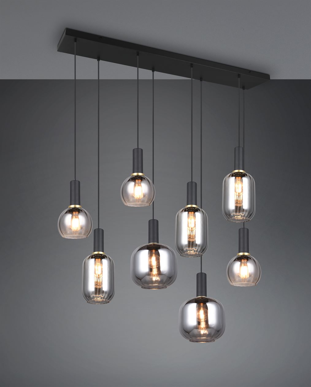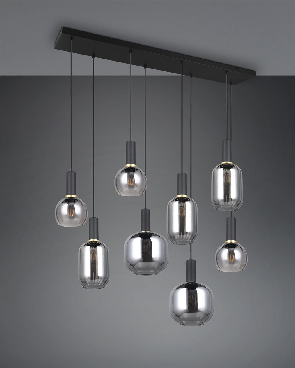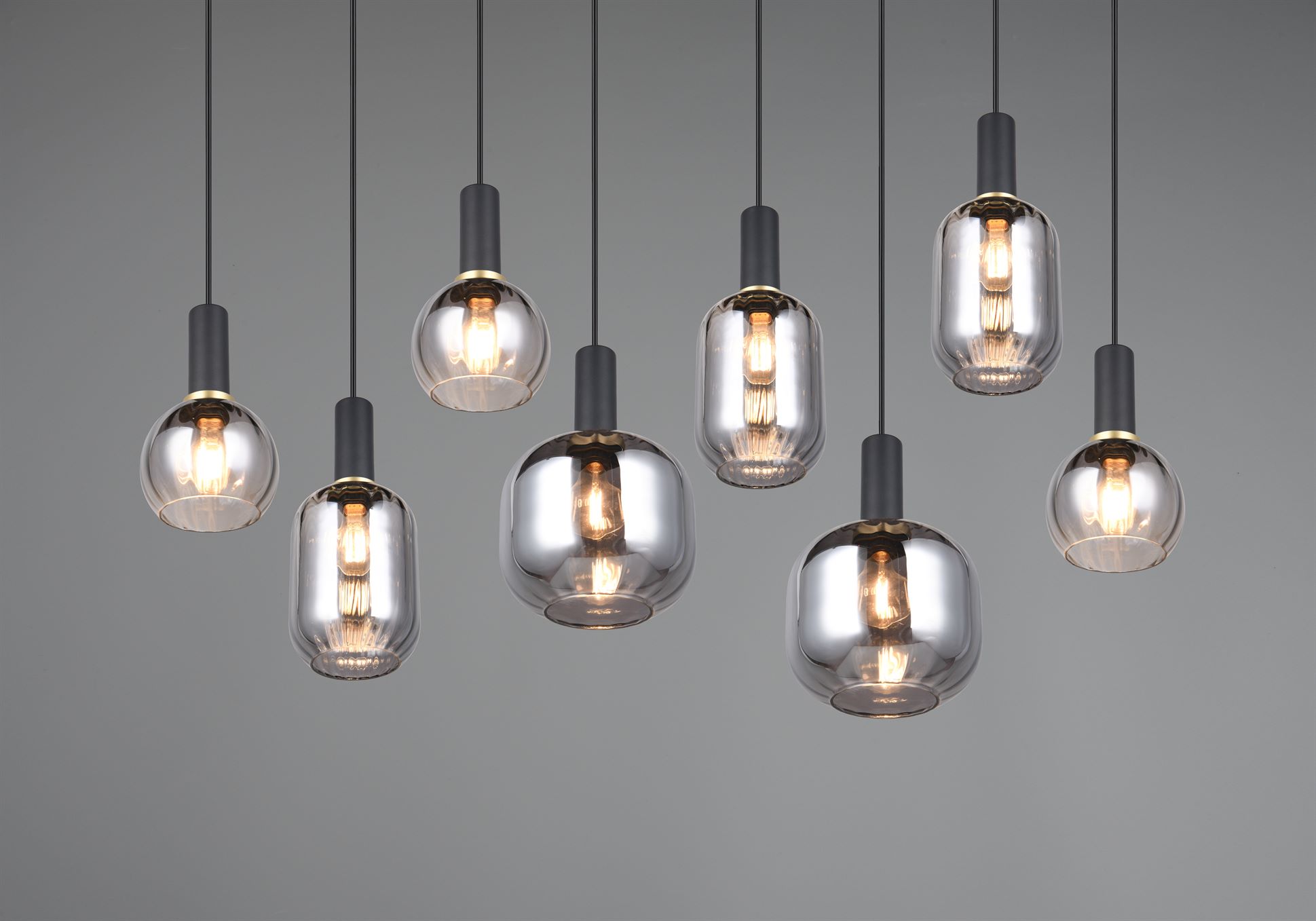 Οι ευέλικτες γυάλινες αποχρώσεις των κρεμαστών φωτιστικών της σειράς DIVA προσδίδουν στο εσωτερικό σας μια ιδιαίτερη γοητεία. Επιπλέουν πάνω από τραπεζαρίες, τραπεζάκια σαλονιού ή πάγκους κουζίνας, είναι ένα εντυπωσιακό μάτι που μαγνητίζει την προσοχή όλων. Το ιδιαίτερο σχήμα και ο σχεδιασμός του γυαλιού διαχέει απαλά το φως και η αντανάκλαση δημιουργεί ένα άνετο παιχνίδι φωτός. Αυτή η ζεστή ατμόσφαιρα φωτισμού, σε συνδυασμό με τον διαχρονικό σχεδιασμό, θα κάνουν γρήγορα το DIVA αγαπημένο στο σπίτι σας. Ο λαμπερός συνδυασμός μαύρου ματ και επιχρωμιωμένου γυαλιού δίνει στο φως των οκτώ λαμπτήρων μια κομψή και διακριτική εμφάνιση. Συνιστάται η χρήση πηγών φωτός LED για φωτισμό εξοικονόμησης ενέργειας. Αυτές είναι μια ιδανική εναλλακτική λύση σε σχέση με τις συμβατικές πηγές φωτός αλογόνου και προσφέρουν υψηλή ποιότητα φωτός και εξοικονόμηση ενέργειας έως και 80%. Με τις πηγές φωτός LED, επωφεληθείτε επίσης από τη μεγάλη διάρκεια ζωής και τη χαμηλή παραγωγή θερμότητας προστατεύοντας παράλληλα το περιβάλλον.