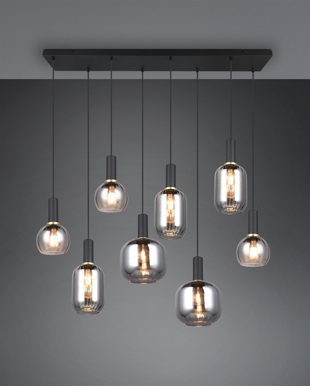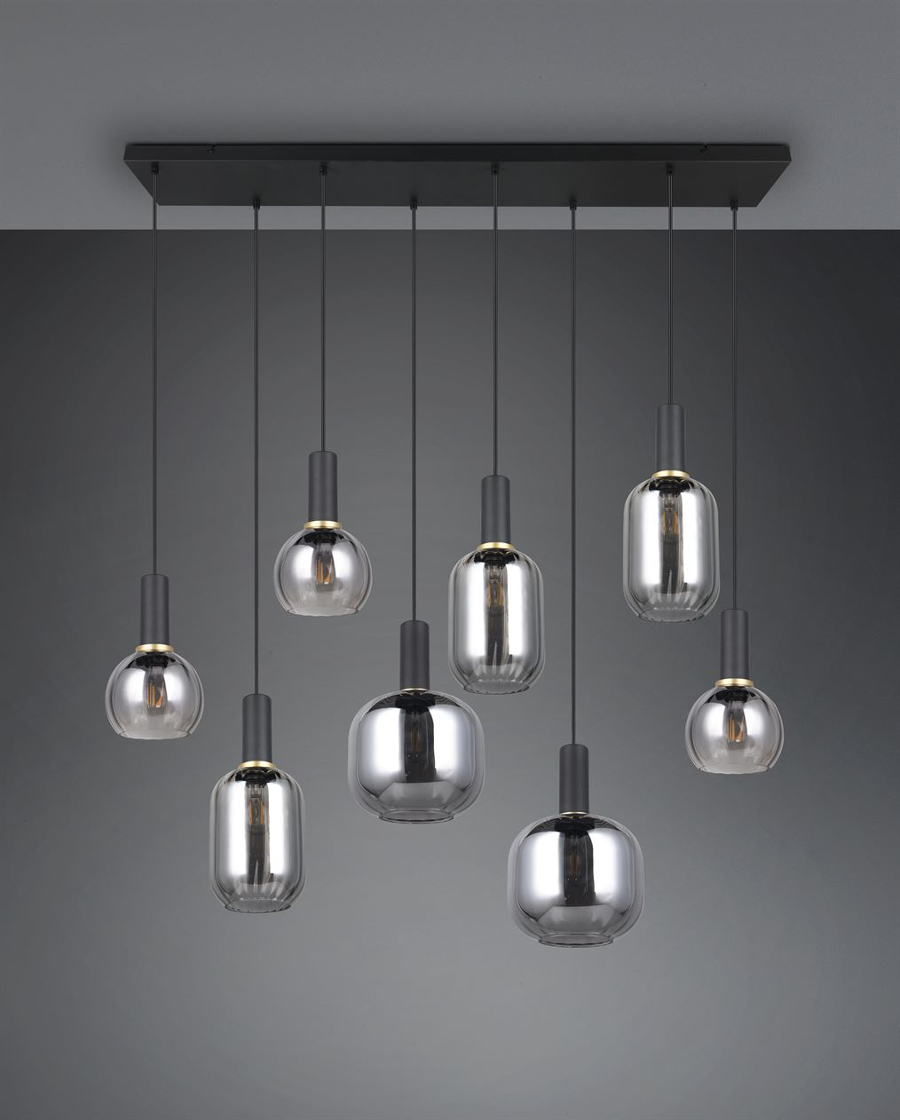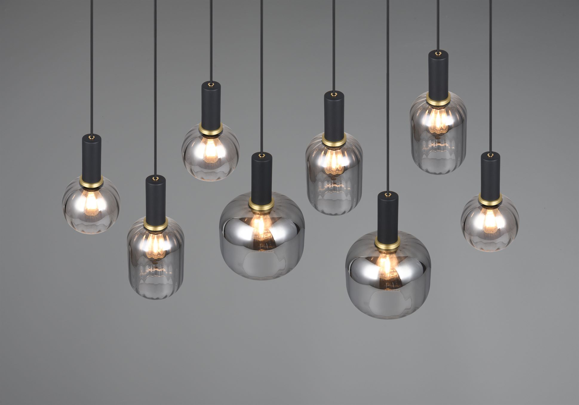 Οι ευέλικτες γυάλινες αποχρώσεις των κρεμαστών φωτιστικών της σειράς DIVA προσδίδουν στο εσωτερικό σας μια ιδιαίτερη γοητεία. Επιπλέουν πάνω από τραπεζαρίες, τραπεζάκια σαλονιού ή πάγκους κουζίνας, είναι ένα εντυπωσιακό μάτι που μαγνητίζει την προσοχή όλων. Το ιδιαίτερο σχήμα και ο σχεδιασμός του γυαλιού διαχέει απαλά το φως και η αντανάκλαση δημιουργεί ένα άνετο παιχνίδι φωτός. Αυτή η ζεστή ατμόσφαιρα φωτισμού, σε συνδυασμό με τον διαχρονικό σχεδιασμό, θα κάνουν γρήγορα το DIVA αγαπημένο στο σπίτι σας. Ο λαμπερός συνδυασμός μαύρου ματ και επιχρωμιωμένου γυαλιού δίνει στο φως των οκτώ λαμπτήρων μια κομψή και διακριτική εμφάνιση. Συνιστάται η χρήση πηγών φωτός LED για φωτισμό εξοικονόμησης ενέργειας. Αυτές είναι μια ιδανική εναλλακτική λύση σε σχέση με τις συμβατικές πηγές φωτός αλογόνου και προσφέρουν υψηλή ποιότητα φωτός και εξοικονόμηση ενέργειας έως και 80%. Με τις πηγές φωτός LED, επωφεληθείτε επίσης από τη μεγάλη διάρκεια ζωής και τη χαμηλή παραγωγή θερμότητας προστατεύοντας παράλληλα το περιβάλλον.