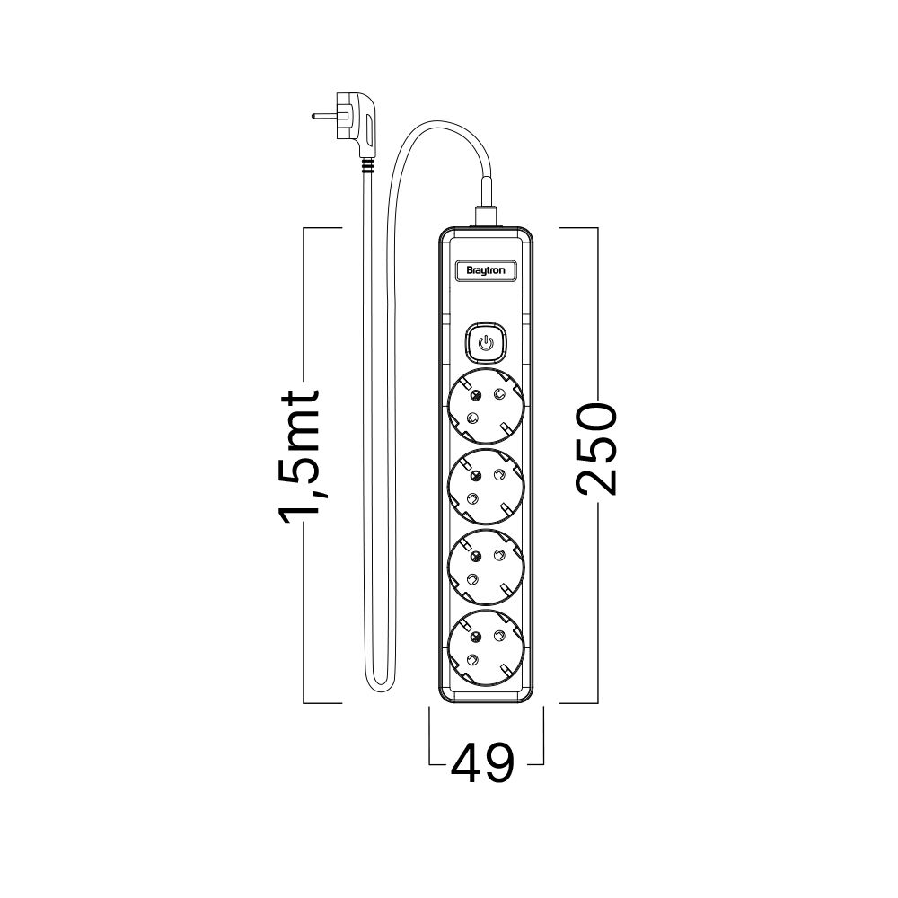 Πολύπριζο Xline 4Θ. 3X1,5mm 1,5m Καλώδιο Με Διακόπτη Με Βάση Στήριξης – BY72-00241