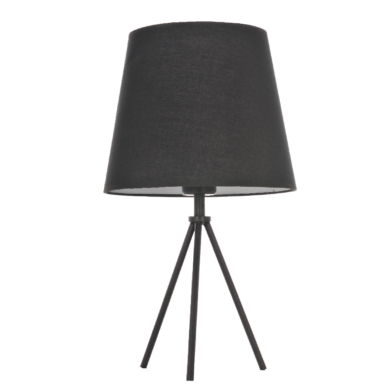 Μεταλλικό επιτραπέζιο φωτιστικό με βάση τρίποδα και υφασμάτινο καπέλο επενδυμένο εσωτερικά με λευκό κάλυμμα. Διακόπτης στο καλώδιο.
