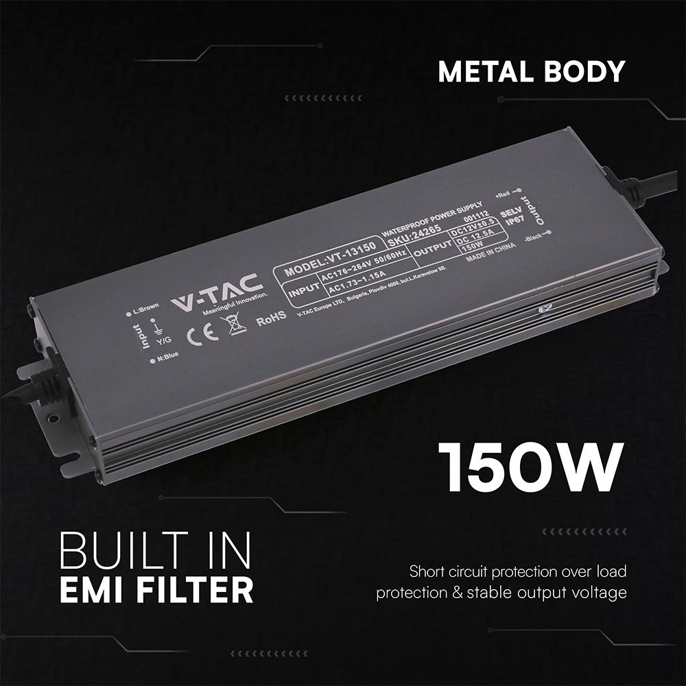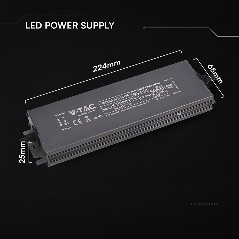 Τροφοδοτικό V-TAC για LED 150W 12V 12.5A IP67 Αδιάβροχο Μεταλλικό 24265VT