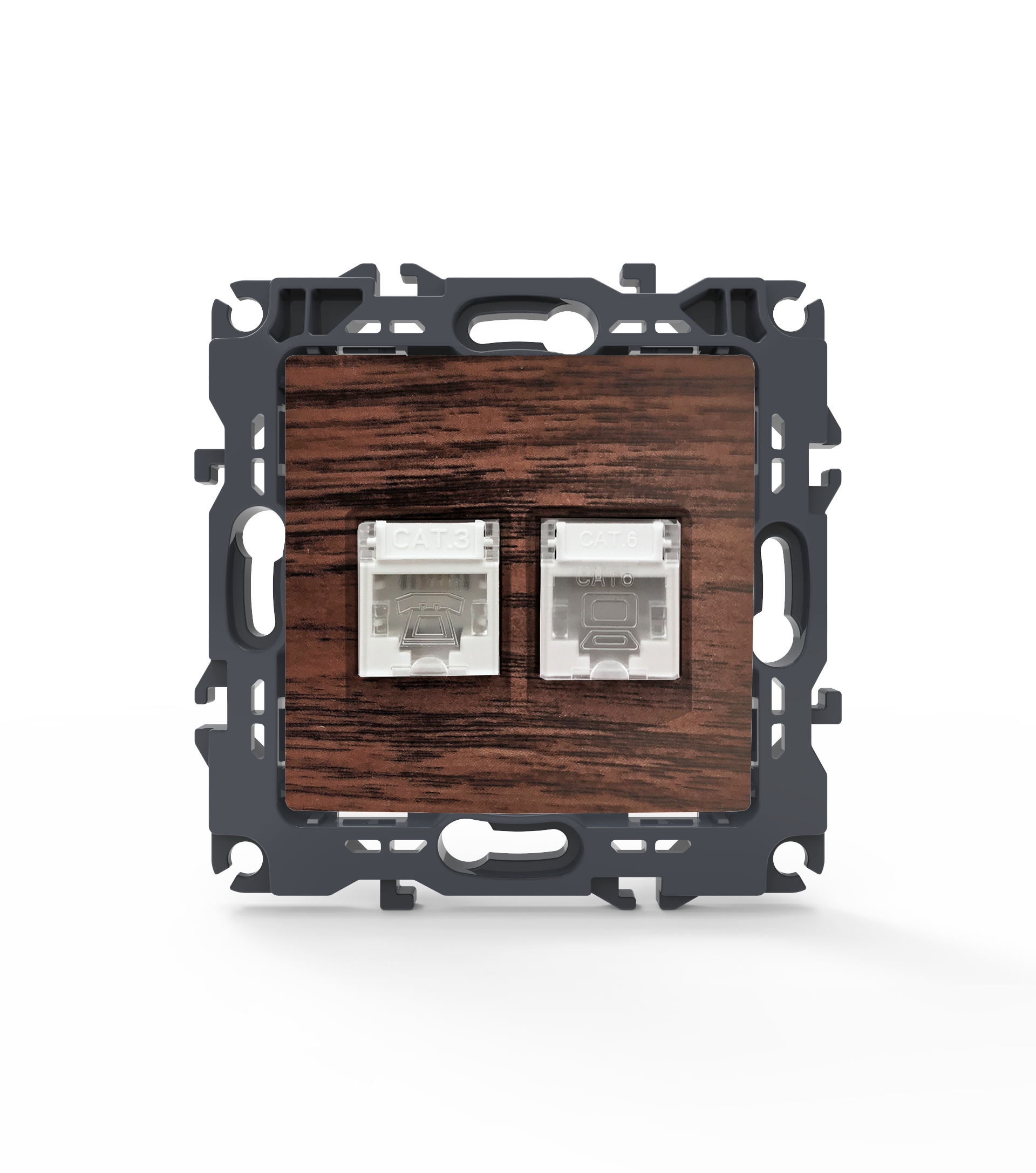PRIME ΠΡΙΖΑ ΤΗΛΕΦΩΝΟΥ 1xRJ11 CAT3 IP20 & ΠΡΙΖΑ ΔΙΚΤΥΟΥ 1xRJ45 CAT6 UTP IP20 ΞΥΛΟ ACA – 1000113406