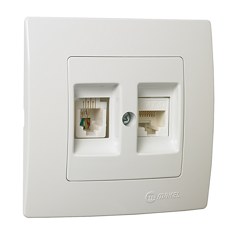 Πρίζα τηλεφώνου-δικτύου RJ11+RJ45 CAT5 διπλή λευκή Makel Lillium Natural Kare – 32001037