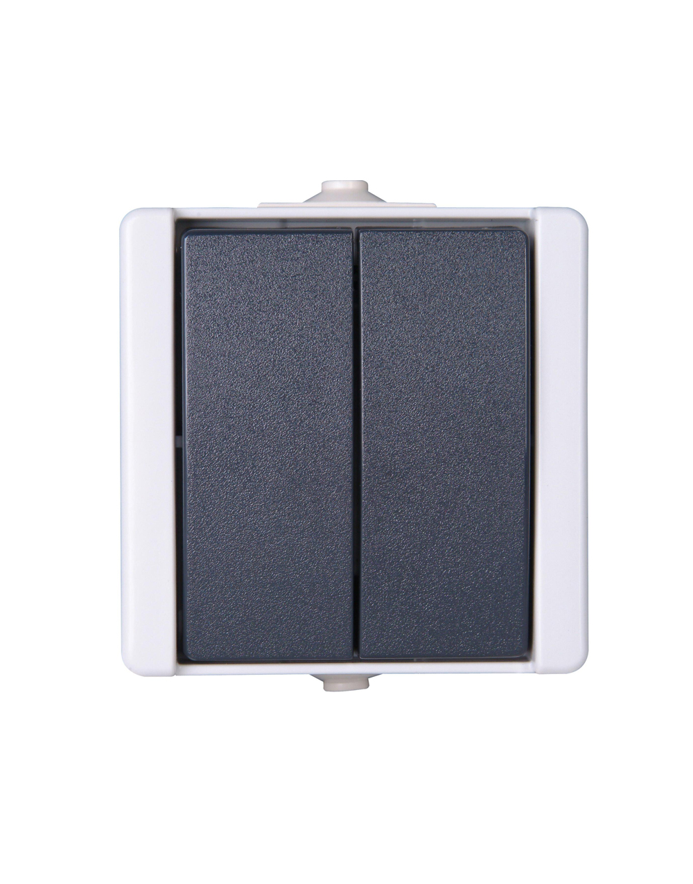 Διακόπτης κομιτατέρ εξωτερικής τοποθέτησης γκρι. Έχει τάση τροφοδοσίας 250V και ένταση ρεύματος 10A. Είναι από θερμοπλαστικό υλικό και ο μηχανισμός είναι μεταλλικός. Η σύνδεση γίνεται με καλώδιο και η στερέωση με βίδα. Ο βαθμός στεγανότητας είναι IP44. Ο μηχανισμός, το πλήκτρο και το πλαίσιο πωλούνται μαζί.