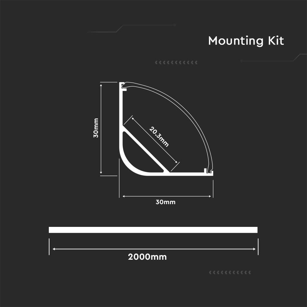 Προφίλ αλουμινίου για ταινίες LED γωνιακό καμπυλωτό 2m V-TAC – 3363
