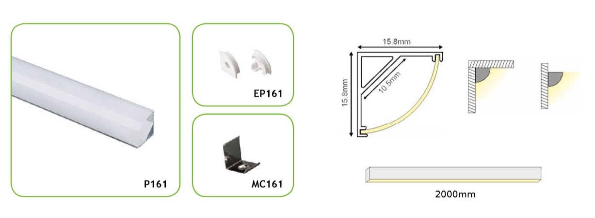 • Μπορείτε να χρησιμοποιήσετε (Δεν περιλαμβάνονται στην αρχική τιμή) Μεταλλικό κλιπ στερέωσης για Προφίλ Αλουμινίου P161 ACA – MC161