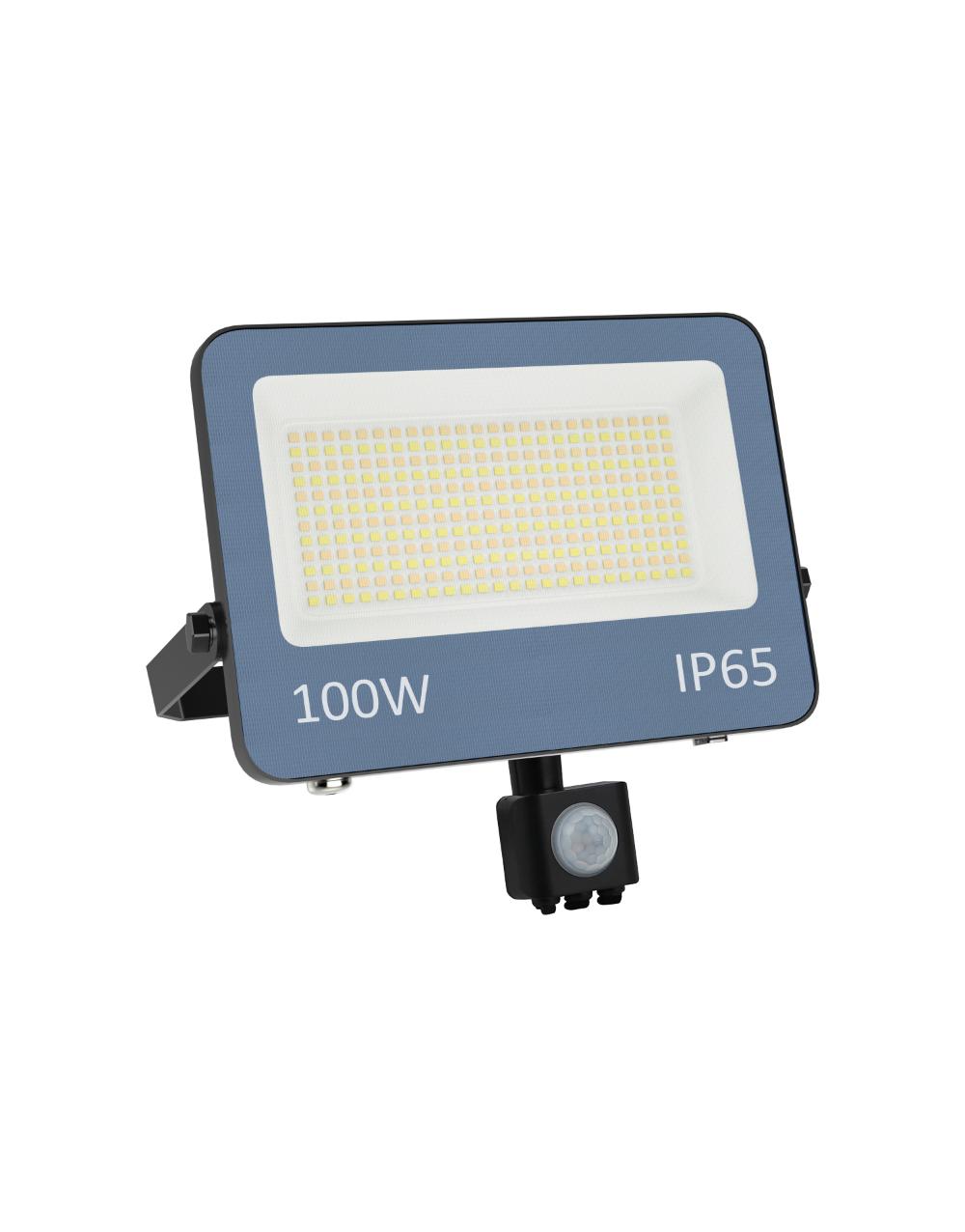 Ο προβολέας LED διαθέτει ανιχνευτή κίνησης και ονομαστική ισχύ 100W και θερμοκρασία χρώματος CCT (3000/4000/6500K) με γωνία δέσμης 90°. Η τάση τροφοδοσίας του είναι 185265V, με συχνότητα λειτουργίας 5060Hz και συντελεστή ισχύος >0.9. Παρουσιάζει χρωματική απόδοση CRI>80 και παρέχει σταθερή φωτεινότητα με προστασία υπέρτασης 4kV. Η κατασκευή του είναι από αλουμίνιο και γυαλί σε ανθρακί χρώμα, με διαστάσεις 190x190x30mm και συνολικό βάρος 0,565kg. Ο προβολέας διαθέτει βαθμό στεγανότητας IP66, αντοχή κρούσης IK06 και καλώδιο σύνδεσης 3×1.5mm με γείωση αντικειμένου. Λειτουργεί σε θερμοκρασίες περιβάλλοντος από -40°C έως +45°C, με ενεργειακή κλάση F. Συνοδεύεται από όλα τα απαιτούμενα πιστοποιητικά και ένδειξη CE, ενώ η διάρκεια εγγύησης είναι 3 χρόνια. Η συσκευασία είναι σε χαρτονένιο κουτί (1/20).