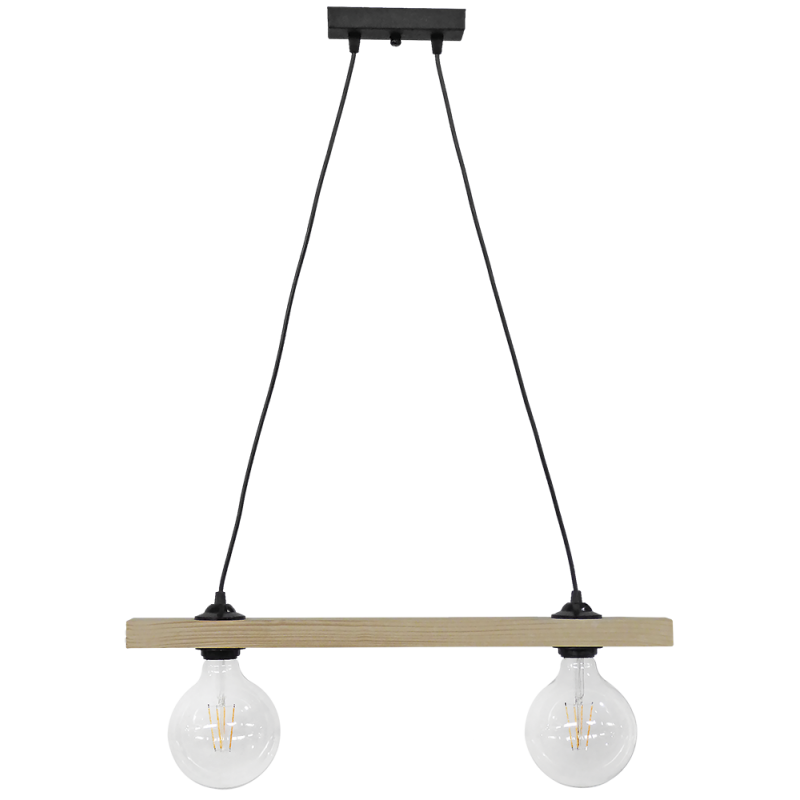 Φωτιστικό κρεμαστό με ράγα ξύλινη και Μαύρο καλώδιο Ε/27 RAGA 2L Καλώδιο Ξύλο