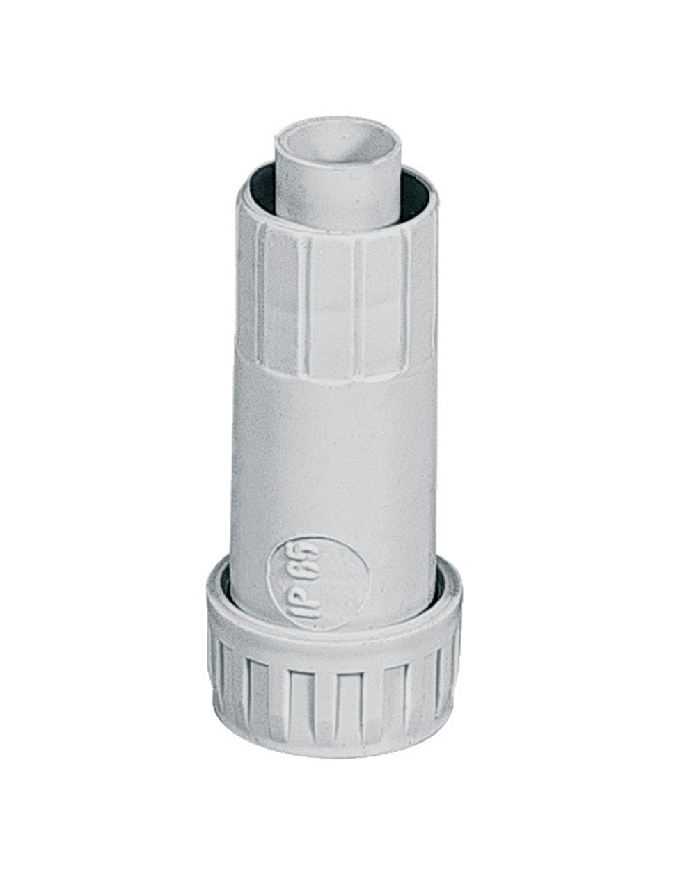 Σύνδεση σωλήνας Φ20 ευθεία με σωλήνα FLEX 16 σε γκρι χρώμα από PVC. Είναι ανθεκτικό σε υψηλή θερμότητα. Ο βαθμός στεγανότητας είναι IP65.