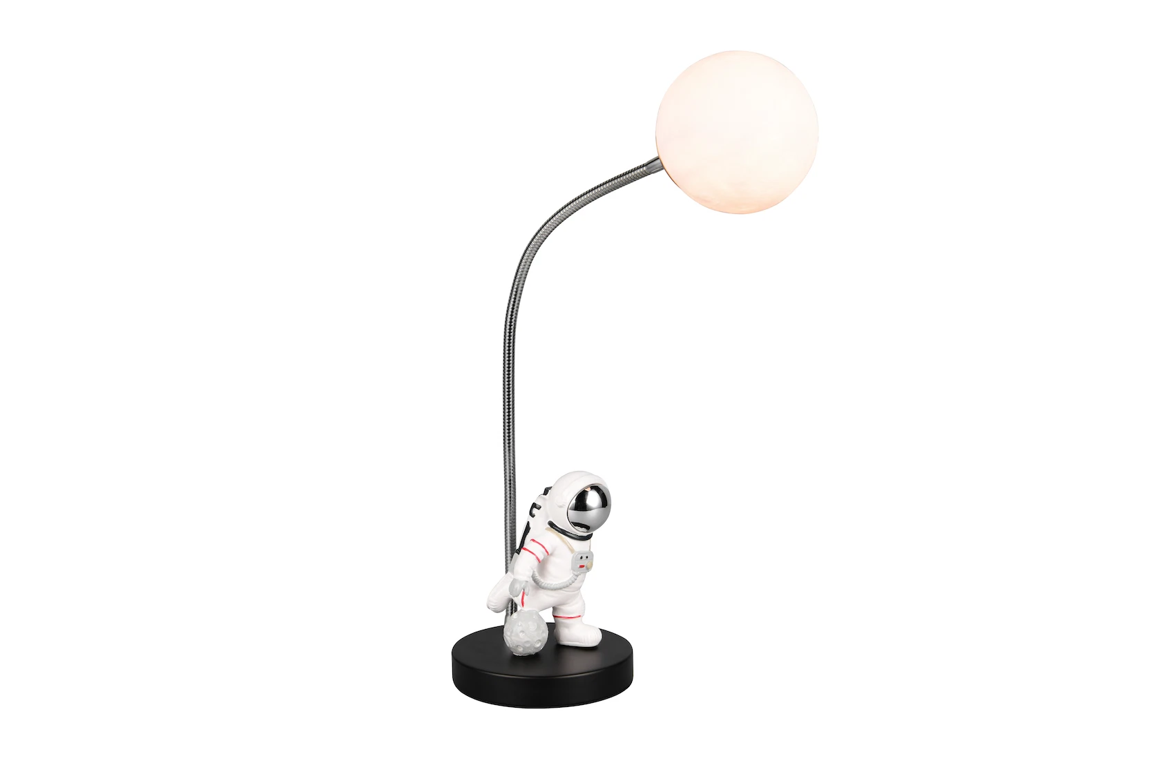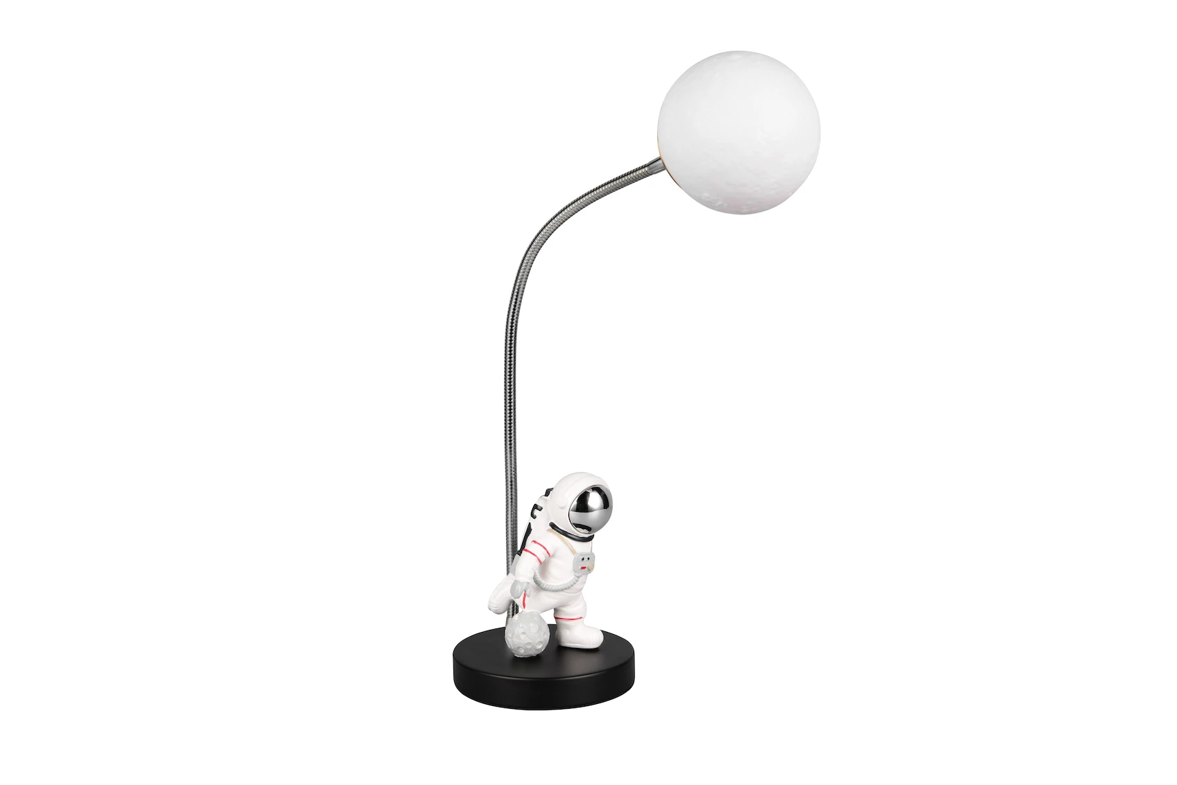 Το επιτραπέζιο φωτιστικό Reality ARM R53801102 συνδυάζει τη φαντασία με τη λειτουργικότητα. Η βάση του απεικονίζει έναν αστροναύτη που κρατά… έναν κρατήρα Σελήνης, ενώ το σποτ-μπάλα που αιωρείται από πάνω, ολοκληρώνει μια εικόνα εμπνευσμένη από το διάστημα — ιδανική για παιδικά δωμάτια, γραφεία ή λάτρεις της αστρονομίας.