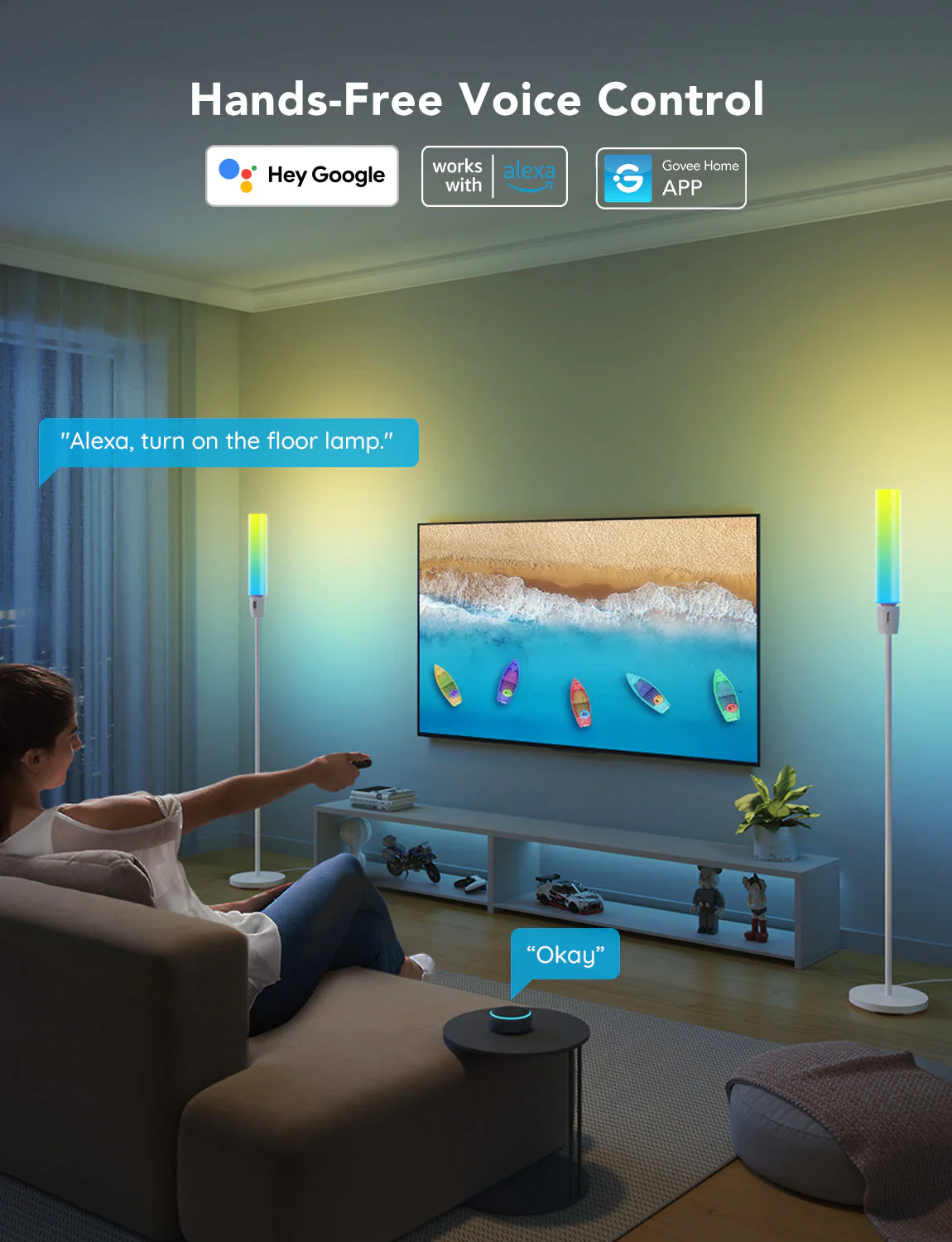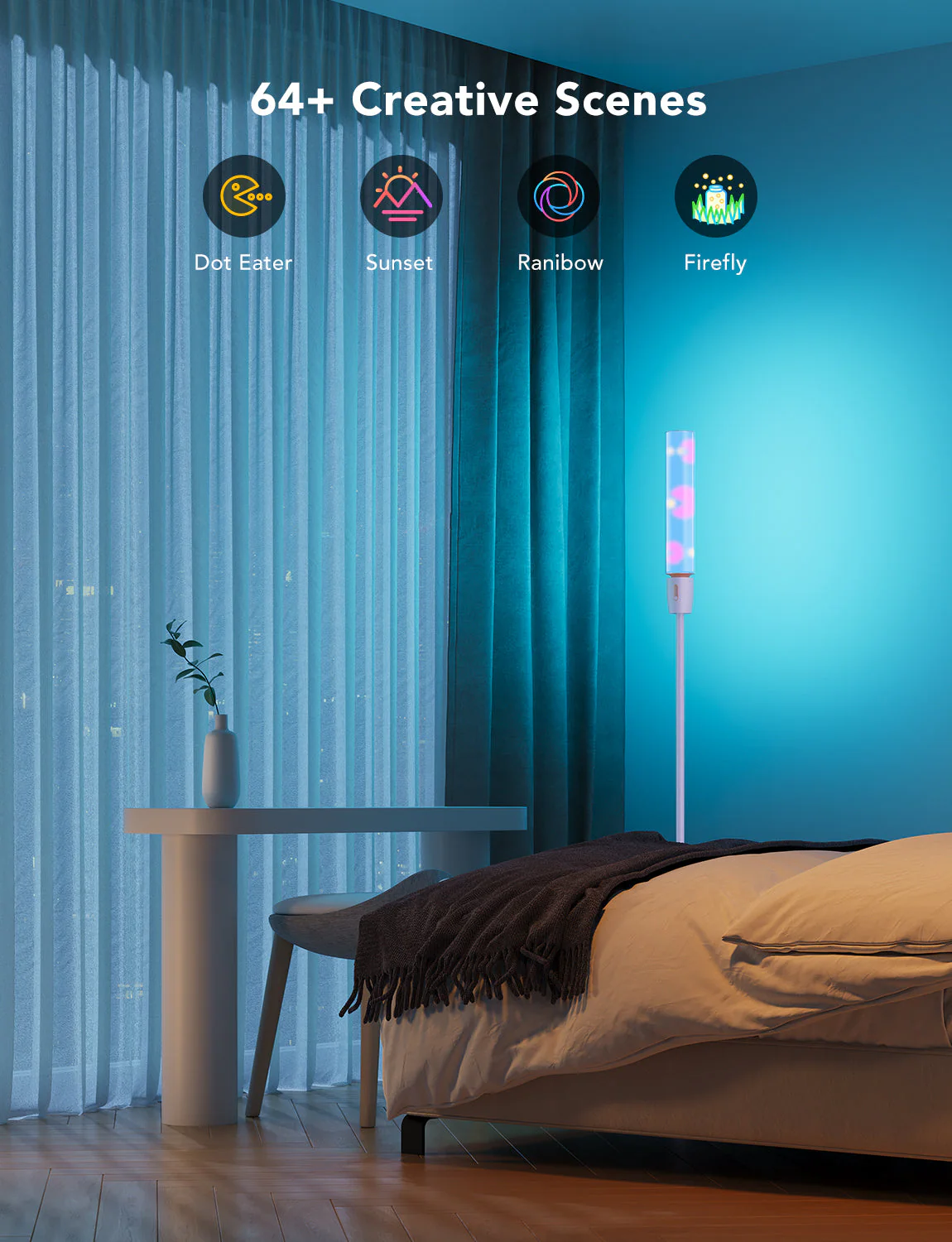 - Δυναμικά εφέ φωτισμού RGBIC: Το διακοσμητικό επιδαπέδιο φωτιστικό της Govee παρέχει εκατομμύρια χρώματα και 64 προκαθορισμένες λειτουργίες σκηνής στην εφαρμογή Govee Home.