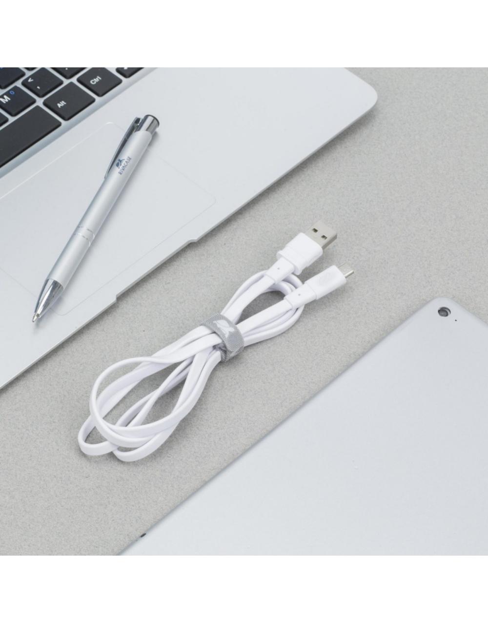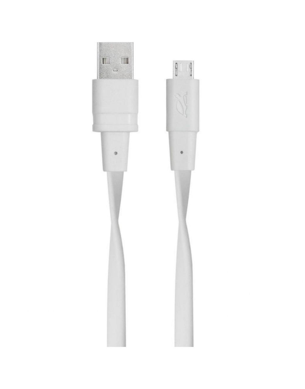 Επίπεδο καλώδιο με ακροδέκτη micro USB σε λευκό χρώμα. Είναι κατάλληλο για τη φόρτιση συσκευών με θύρα micro USB, όπως κινητά τηλέφωνα, tablets, MP3 players και ψηφιακές φωτογραφικές μηχανές.