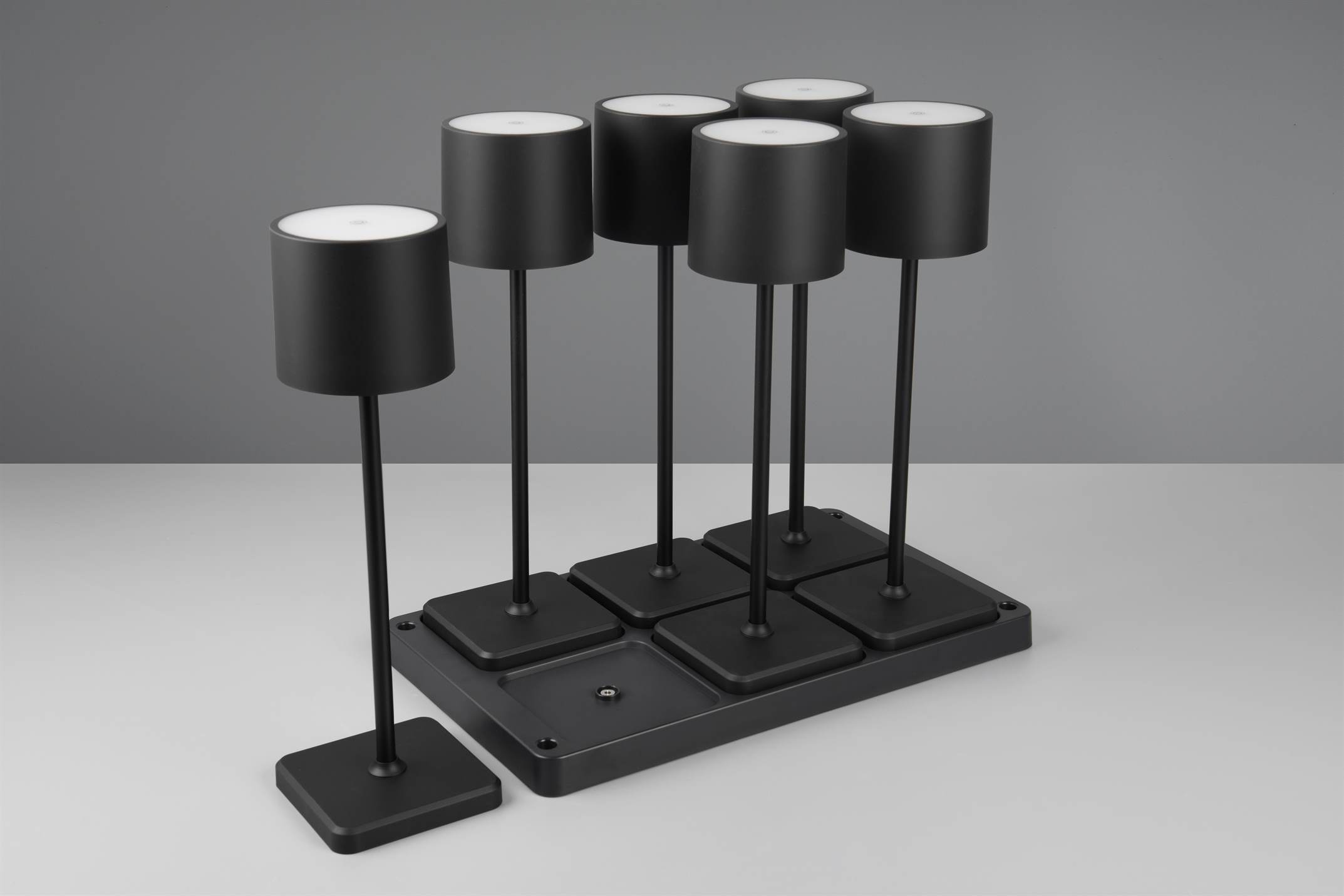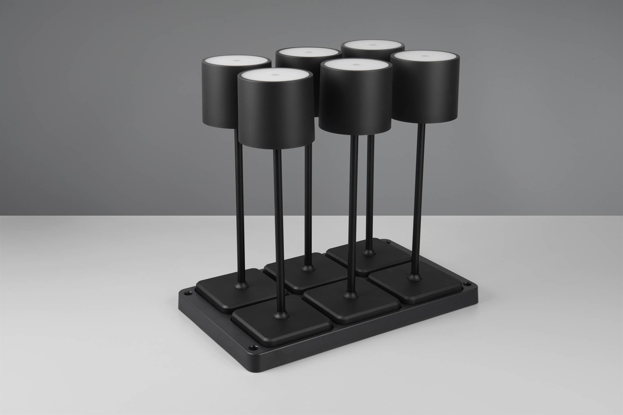 Σετ 6 Επαναφορτιζόμενα Πορτατιφ Μαύρο Ματ FERNANDEZ LED 1.5W 130lm CCT Dimmable Αφής με Ασύρματη Βάση Φόρτισης IP54 Reality – R54096632